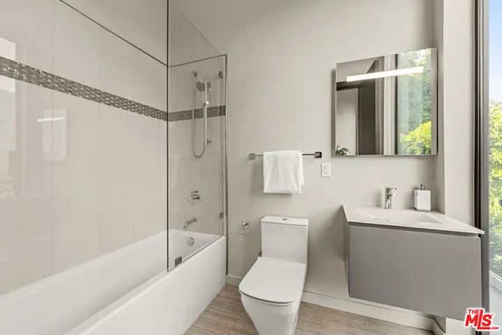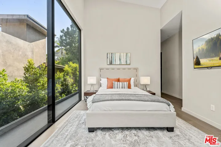 AVAILABLE MONTHLY AND QUARTERLY AT HIGHER RATE. Tucked behind lush hedging and mature palms, this striking contemporary residence rises as a private architectural retreat in one of Beverly Hills’ most coveted pockets. Moments from the Beverly Hills Hotel and the Golden Triangle, the home offers the rare balance of central convenience and complete seclusion. Spanning approximately 4,500 square feet, the five bed, six bath residence was thoughtfully designed for seamless indoor outdoor living. Clean architectural lines, expansive floor to ceiling glass, and a dramatic double height stairwell create a light filled environment that feels both modern and warm. The main level unfolds through an open concept living and dining space framed by walls of glass overlooking tranquil greenery. A sleek fireplace anchors the living room, while the chef’s kitchen features custom cabinetry, premium appliances, and an oversized island ideal for entertaining. Sliding doors open effortlessly to the backyard a private oasis complete with pool, lounging terrace, and grassy lawn surrounded by tall hedges for ultimate privacy. Upstairs, all bedrooms are en suite, offering comfort and discretion for family and guests alike. The primary suite is a true sanctuary, defined by soaring ceilings, oversized windows, a spa inspired bath with soaking tub and a generous walk in closet. Designed for both leisure and lifestyle, the lower level reveals a glass wine wall, custom bar, and home theater creating an ideal setting for gatherings. This property represents contemporary Beverly Hills living at its finest; private, refined, and effortlessly connected to all that Los Angeles has to offer. ******Also available for sale.