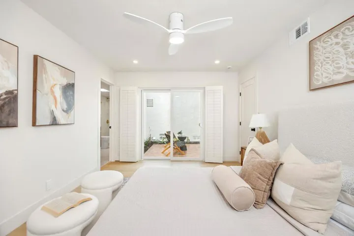 Impeccably remodeled, this Spanish-style retreat sits in the heart of Fountain Valley, offering timeless architectural charm paired with modern comfort. The home showcases wide-plank flooring, soft neutral tones, Spanish Revival detailing, and a bright, open layout anchored by a sweeping stucco fireplace that creates a warm and inviting living space. The designer kitchen features custom cabinetry, quartz countertops, stainless steel appliances, and elegant gold-accent fixtures, flowing seamlessly into the family and dining areas. Expansive sliding doors enhance the connection to the private courtyard and sparkling pool, creating a natural extension of the living space. The primary suite offers a serene, hotel-inspired ambiance with private atrium access. The spa-style en-suite bath includes dual vanities, an oversized glass-enclosed shower, and refined finishes. Additional bedrooms provide flexible space for guests, workspace, or fitness needs, complemented by a beautifully updated secondary bath featuring custom tilework. Outdoor spaces create a private oasis with a sparkling pool, brick patio decking, and a tranquil atrium lounge ideal for relaxing or entertaining. Conveniently located near parks, shopping, popular schools, dining, and commuter routes including the 405, this exceptional residence blends architectural character with the ease of coastal-close Southern California living.