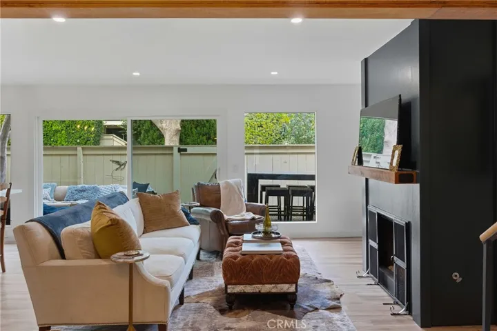 Throughout the home are new flooring, updated windows, and a new sliding glass door, bringing in abundant natural light and enhancing indoor-outdoor flow. The living room is anchored by a contemporary fireplace, adding both warmth and architectural interest.