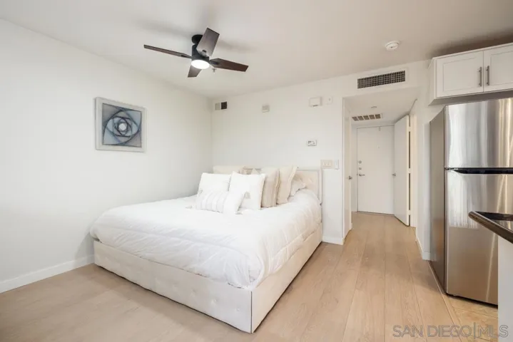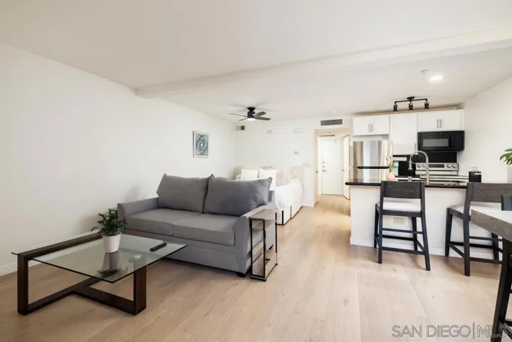Experience urban living in the heart of the Marina District at the highly desirable ATRIA community, designed by the well-respected architectural team of Rob Wellington Quigley. This beautifully fully furnished upgraded studio is perfectly situated just steps from the Gaslamp Quarter, Petco Park, Seaport Village, the Convention Center, Ralphs grocery, and San Diego’s finest dining and waterfront attractions. Offering recent upgrades, this residence showcases new luxury vinyl plank flooring, fresh designer paint, and updated kitchen and bathroom cabinetry. The kitchen is enhanced with a brand new LG stainless steel refrigerator and stove, complemented by a new in-unit washer/dryer, new light fixtures, and stylish hardware throughout. Additional improvements include new kitchen and shower faucets, a refinished tub, new medicine cabinet, contemporary ceiling fan, and a Nest thermostat for modern comfort and efficiency. Enjoy granite countertops, stainless steel appliances, a spacious walk-in closet, and central air conditioning. One assigned underground parking space included. ATRIA offers premier amenities including a rooftop BBQ and gathering deck, media room, and 24-hour fitness center, perfect for those seeking a vibrant, walkable, and sophisticated coastal lifestyle. This beautifully fully furnished upgraded studio is perfectly situated just steps from the Gaslamp Quarter, Petco Park, Seaport Village, the Convention Center, Ralphs grocery, and San Diego’s finest dining and waterfront attractions.