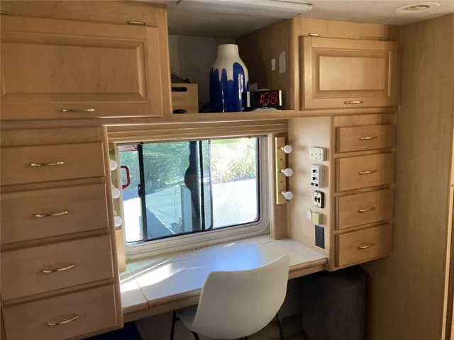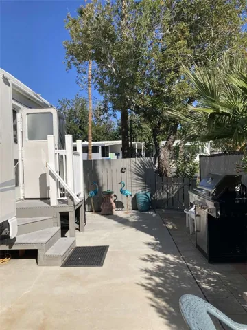 Lovely vacation home opportunity in a 55+ Desert Hot Springs park. Turnkey property includes furniture, kitchen supplies, and linens. Enjoy the beautiful year round weather from the private patio area surrounded by mature desert landscaping which includes drip irrigation. Your desert retreat is a 2003 thirty-three foot 5th wheel in good condition. The roof has recently been snow coated. An 8×10 metal storage shed is included in the space. The property is leased for $541 a month (one of the lowest lease amounts in the area). Water, garbage, and yard waste removal is included. Park is gated, in a very quiet area with places to walk and bike just outside the gate. Park amenities include a heated mineral swimming pool and spas, clubhouse, and dog park. Potential owners must be approved by park management.