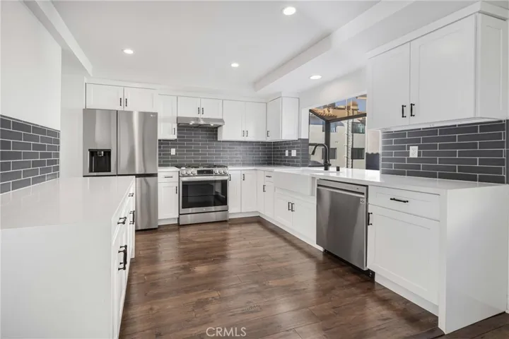 This exquisite 3-bedroom, 2.5-bathroom split-level townhome, fully renovated in 2024 with premium finishes, offers a perfect blend of contemporary style and comfort. Featuring all-new interior paint and appliances—including a washer and dryer—this residence boasts luxury vinyl flooring and recessed lighting throughout, creating a bright and welcoming ambiance. Natural light fills the space through numerous windows, complementing the stylish double-door entry that leads to a convenient powder bath. Up one flight of stairs, the expansive living room is highlighted by a sleek corner gas fireplace and sliding glass doors that open to a private balcony, perfect for relaxing or entertaining. The sophisticated kitchen is a chef’s dream, showcasing white shaker cabinets, a chic gray subway tile backsplash, and stunning white quartz countertops with waterfall edges. Stainless-steel appliances include a 6-burner gas stove with a range hood, dishwasher, oversized refrigerator, and a farmhouse sink with a picturesque garden window. A grand picture window enhances the stairwell, beautifully framed by a striking chandelier. The upper level offers three spacious bedrooms, with two sharing a beautifully updated ¾ bathroom featuring a large walk-in shower, while the elegant primary suite includes a modern full bathroom. The attached 2-car garage provides direct access and a dedicated laundry area. This well-maintained private community offers a resort-style pool and spa, and is located in the highly-rated Las Virgenes School District. Enjoy the convenience of being just a short distance to popular spots such as yoga studios, cycling and Pilates classes, Erewhon, Philz Coffee, Starbucks, and an array of upscale shopping and dining destinations. With easy access to the 101 freeway and just a short drive to Malibu, this townhome offers the perfect blend of suburban tranquility and urban convenience.