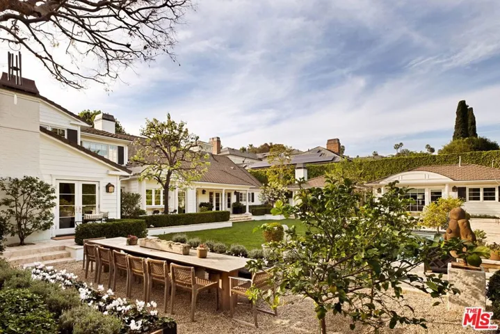 Elegantly reimagined by award-winning designer Wendy Haworth (Felix Trattoria, Stella, Gracias Madre), this Hamptons-inspired estate with a sought after guest house occupies the premiere mid-block position on the coveted 700 block of Arden Drive — widely regarded as the best block on the best street in the Beverly Hills Flats. Thoughtfully composed and beautifully balanced, the home embodies a rare harmony of scale, light, and openness designed to support ease, happiness, and everyday living at its highest level. From the moment you enter, the house reveals a quiet confidence and genuine soul. Gracious, warm, and timeless, it is neither trendy, nor speculative, but deeply considered classic elegance combined with consummate livability. Natural light pours through the interiors, and the home’s intuitive flow reflects a subtle but powerful sense of feng shui: rooms open effortlessly to one another and outward to the garden, creating a feeling of calm, connection, and balance throughout. The main level unfolds with intention. A beautifully appointed gourmet eat-in kitchen anchors the home, while the vaulted-ceiling dining room elevates everyday meals into moments of occasion. The wood-beamed living room, expansive family room with its sunken bar, and the elegant leather-trimmed library are thoughtfully interconnected to invite conversation, retreat, and togetherness. Nearly every principal room opens seamlessly to the backyard, reinforcing a true indoor-outdoor lifestyle. The primary suite, ideally located on the main level for a true single-story living experience, is a sanctuary unto itself. Vaulted, beamed ceilings, a romantic fireplace, dual baths, and dual walk-in closets create a retreat that feels both luxurious and restorative. Perfectly scaled, never excessive.A large functional office and a beautifully curated guest suite complete the main level.Upstairs, two guest bedrooms and a lounge/playroom provide flexible space for children, guests, or creative pursuits. A lower level offers an intimate, top notch, full Dolby surround sound home theater, recreation area and dual wardrobe/glam rooms. Outdoors, the property transforms into a magical, expansive, resort-like environment reminiscent of San Ysidro Ranch (a rare and welcomed pairing with the sophistication of Beverly Hills). Set on nearly half an acre and exquisitely landscaped by acclaimed landscape-architect-to-the-stars Scott Schrader, the grounds feature meandering paths, flowering gardens, lemon trees, and a sweeping lawn that invites barefoot afternoons and family play. While the large sparkling pool, inviting spa, and spacious garden dining area (with its dinner-for-14 table) are each stars in their own right, at the heart of the outdoor experience is the spectacular covered pavilion, with its dramatic wood-burning fireplace. Together, these revered elements invite and nurture long, al fresco meals, celebrations, and gatherings that stretch effortlessly from day into night. This is where the home truly comes alive: birthdays, holidays, quiet mornings, and unforgettable evenings shared together. The high-design guest house — sumptuous, private, and impeccably finished — is prized by all who are lucky enough to experience it, offering exceptional flexibility for guests, extended family, and undeniable appeal. Impeccably maintained and in move-in condition, the property offers everything you need. Every space flows, every element has purpose, and every detail supports a life well lived. Enviably located on the eastern side of the Beverly Hills Flats, the home is just moments from the world-class shopping, dining, culture, and nightlife of both Beverly Hills and West Hollywood. Truly a rare offering defined by intangible qualities that cannot be replicated.