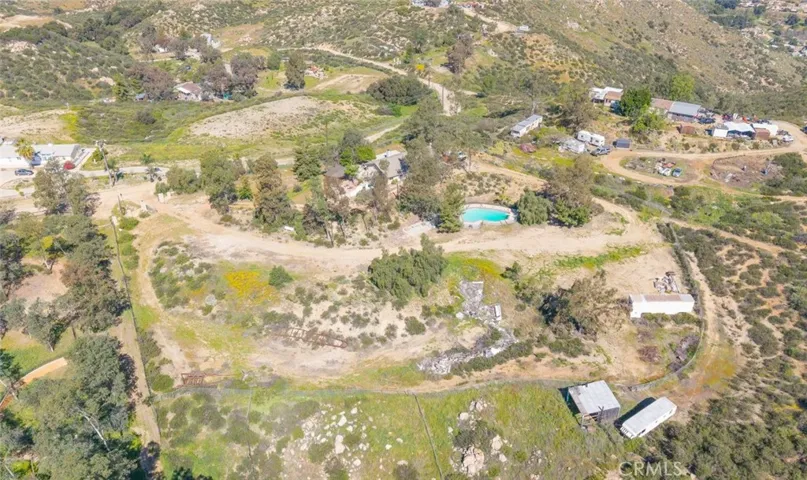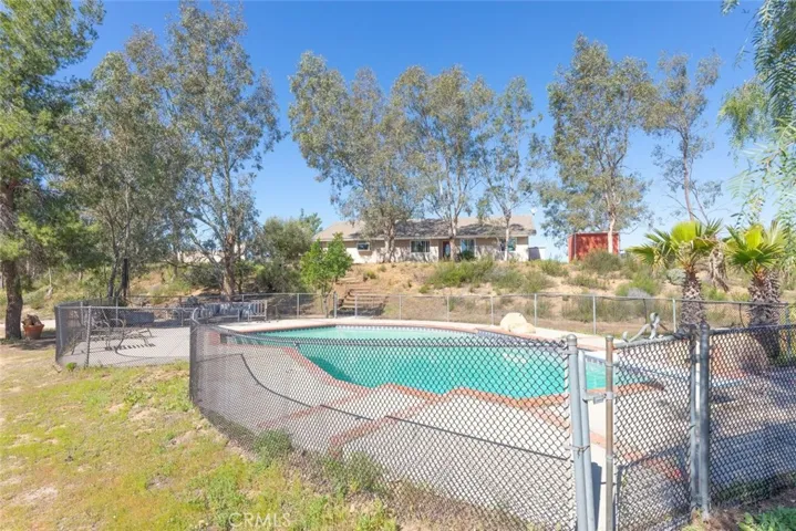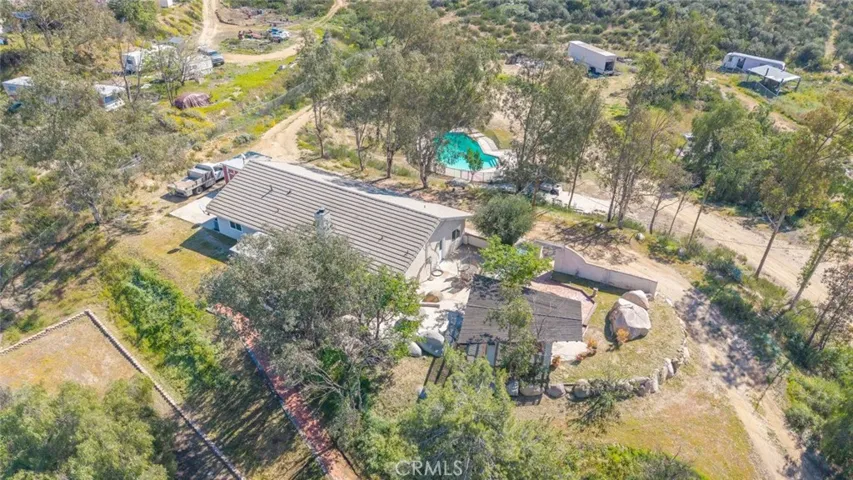 Welcome home to this stunning single-story ranch-style POOL home featuring 3 bedrooms plus an office/den (easily converted to a 4th bedroom), 2 full bathrooms, and located on an incredible 6.46 acres which are usable and secluded. This property has with LOW TAXES and NO HOA. Offering breathtaking 180-DEGREE PANORAMIC VALLEY VIEWS that provides the perfect balance of privacy, space, and convenience—ideal for RVs, toys, horses, or future expansion. Inside, the home showcases gorgeous porcelain tile flooring throughout, new baseboards, all new door casings, new interior and exterior doors and a thoughtfully designed layout that includes a formal living room, formal dining area, and an impressive chef’s kitchen. The kitchen features custom built-in cabinetry, granite countertops, bar seating, a cooktop with vented hood, stainless steel appliances, decorative tile backsplash, wine cooler, and a charming bay-window sitting area perfectly positioned to capture the sweeping views. The spacious family room offers vaulted ceilings, a cozy fireplace, and abundant natural light, creating an inviting space for everyday living and entertaining. Recent upgrades include newer vinyl windows and sliding doors throughout, along with a new AC system. The primary suite is large and private, featuring vaulted ceilings, a walk-in closet, sliding door access to the outdoors, and a beautifully updated bathroom with a custom walk-in shower. Two additional bedrooms are generous in size and share a remodeled hallway bathroom with dual sinks, a tub/shower combo, and ample storage. Additional highlights include a large indoor laundry room with cabinetry and potential exterior access, making it ideal as a mudroom. Outdoors, enjoy multiple patio areas, a fire pit for crisp evenings, and endless opportunities to relax while taking in the expansive valley views. The property offers miles of scenic riding trails, extensive usable land suitable for an equestrian setup or boarding facility, and most of the acreage is fenced. An additional graded pad outside the fenced area provides an excellent opportunity for a future ADU. Located close to shopping, businesses, schools, restaurants, and the 15 & 215 freeways, this property offers the rare combination of being near everything while still feeling far removed from the hustle and bustle of city life. This is truly country living at its finest—don’t miss this exceptional opportunity.
