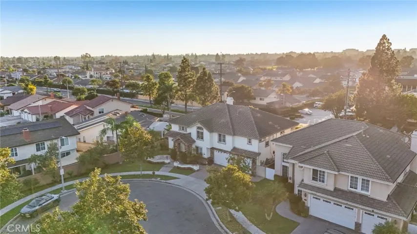 This stunning two-story corner-lot home, built in 2004, offers 3,926 sq. ft. of elegant living on a 7,429 sq. ft. lot. Featuring 5 bedrooms, 4.5 bathrooms, a spacious upstairs loft, and a first-floor office with stylish bamboo flooring, this residence blends warmth and sophistication. Nestled on a peaceful cul-de-sac, it boasts exceptional curb appeal with a beautifully landscaped walkway leading to a welcoming entry. Inside, soaring 20-foot ceilings, stately white pillars, custom porcelain tile flooring, new carpet, and fresh paint create a bright, open atmosphere. Expansive windows with plantation shutters fill the home with natural light. The gourmet kitchen is a chef’s dream, showcasing maple cabinetry, granite countertops, and premium Viking stainless steel appliances, including a six-burner cooktop and double oven. A full-height granite backsplash, large island with storage, and walk-in pantry add beauty and function. A fireplace anchors the adjacent family room that opens to an entertainer’s backyard paradise. The beautifully designed backyard features a flagstone patio with built-in natural gas BBQ, oversized island with seating, three-tier fountain, and built-in speakers to add a musical atmosphere. A separate corner is plumbed and wired for a spa—an opportunity to create your own private retreat beneath the stars. The first floor includes a large bedroom with full bath and patio access—ideal for visitors or multigenerational living—plus a separate office and stylish half bath. Upstairs, the expansive loft provides options as a second office, recreation room, or sixth bedroom. The luxurious primary suite is a serene escape with a spa-inspired bath featuring a walk-in shower, Jacuzzi soaking tub, dual vanities, marble flooring, and two walk-in closets. The large secondary bedrooms feature mirrored closets and either Jack & Jill or shared bathrooms. The upstairs laundry room adds convenience plus built-in cabinetry and sink. Additional highlights include a three-car garage with Tesla charger and extra laundry hookups, tankless water heater, solar panels, whole-house fan, dual-zone AC, and upgraded sound-insulated windows. Located within the top-rated ABC Unified School District—home to Whitney High School—and near Gonsalves Elementary, Carmenita Middle, Cerritos High, multiple parks, Cerritos Town Center, Los Cerritos Mall, & major freeways (5, 91, 605). Don’t miss your chance to make this exceptional property your new home—schedule a tour today!