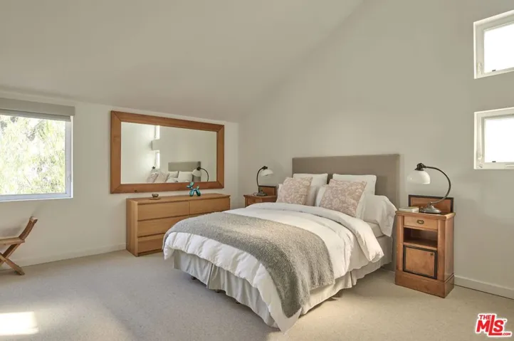 Architecturally striking and filled with natural light, this contemporary 2-bedroom, 2.5-bath townhome offers approximately 1,894 square feet of dramatic, design-forward living space across multiple levels. Clean modern lines, exposed structural elements, and soaring ceilings create a true sense of volume, while oversized windows and skylights flood the interiors with light throughout the day. The main living areas unfold in an open, loft-like configuration, anchored by warm wood floors, custom built-ins, and sleek metal railings. The kitchen integrates seamlessly into the living space, featuring stainless steel appliances, generous counter space, and a layout well suited for both entertaining and everyday living. Multiple private outdoor spaces extend the home’s livability, including a tranquil courtyard and an upper-level terrace ideal for morning coffee or evening relaxation offering a rare indoor-outdoor experience in this setting. The primary suite is a peaceful retreat with vaulted ceilings, abundant natural light, and a spa-inspired bathroom complete with a soaking tub, glass-enclosed shower, and refined finishes. A second bedroom provides flexibility for guests, a home office, or creative space. Additional highlights include a gated parking area with a private garage, thoughtful storage, and a layout that balances architectural drama with comfort and privacy. Ideally located near Montana Avenue’s shops, cafes, and everyday conveniences, and just moments from the beach and ocean, this residence offers effortless access to the best of Santa Monica living in a setting defined by modern design and architectural character.