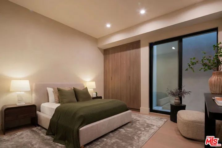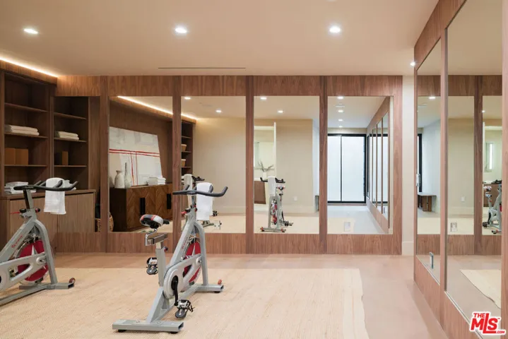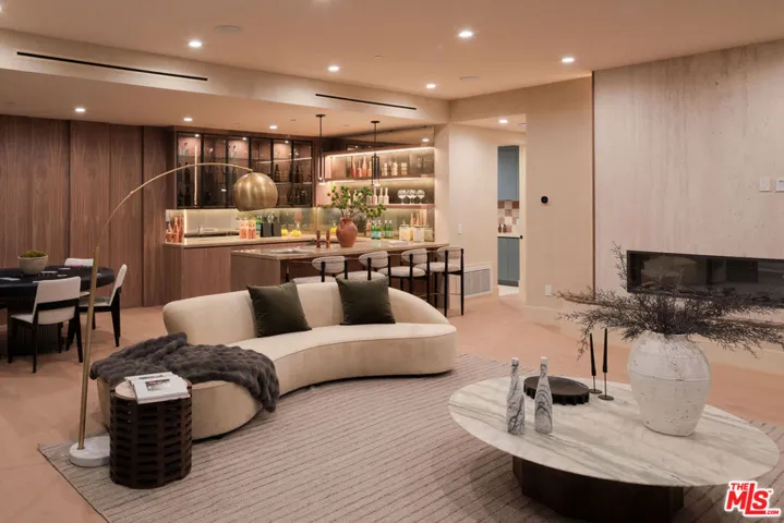 Set behind a composed masonry faade and framed by curated landscaping, this newly constructed contemporary residence pairs clean architectural lines with warm, textural finishes. Steel-framed openings and symmetrical design create a presence that feels both timeless and current. Inside, light-filled living spaces are defined by wide-plank oak floors, limewashed walls, and a refined blend of white oak and walnut millwork. Custom paneling, tailored built-ins, and sculptural lighting add depth while maintaining a cohesive, modern aesthetic. The main living room centers around a dramatic travertine fireplace with integrated shelving, while expansive openings flood the space with natural light. The layout flows seamlessly into the dining area and chef’s kitchen, where white marble surfaces and slim Shaker-style cabinetry deliver both elegance and functionalityopen for entertaining yet comfortable for everyday living. Retractable sliding doors dissolve the line between indoors and out, extending the living space to a private, resort-like backyard. Mature hedging, layered greenery, and generous patio areas create multiple zones for dining and lounging, all surrounding a pool framed by clean hardscape and soft landscaping. Upstairs, the primary suite offers a calm, light-filled retreat. The spa-inspired bath features a freestanding soaking tub, expansive walk-in glass shower with bench, and a floating double vanity clad in rich wood with stone countertops and refined wall-mounted fixtures. Emperador Light marble and warm finishes add depth while maintaining a clean, contemporary feel. A custom dressing area with built-in shelving and tailored lighting completes the suite. Secondary bedrooms and baths continue the home’s modern design language with consistent finishes and thoughtful detailing throughout. Resort-caliber amenities are thoughtfully positioned on the lower level, including a private cinema, a dedicated wellness suite featuring a fully outfitted fitness studio and spa bath with steam shower, as well as two additional guest suites. Outdoor entertaining areas extend the home’s livability, creating a setting that functions as both retreat and gathering space. Meticulously executed, this contemporary residence blends architecture, comfort, and lifestyle with enduring appeal.