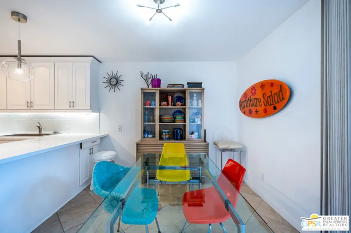Designed by William F. Cody, AIA, this spacious Palm Springs Country Club condo showcases classic mid-century lines, clean architectural geometry, and an effortless indoor-outdoor lifestyle. Trapezoidal rooflines, floor-to-ceiling doors, and expansive sliders – hallmarks of Cody’s vision – are all on display in this comfortable patio home. One of the coveted 3-bedroom, 2-bath residences in Phase Two of one of the last condo community projects Cody designed (originally known as Whitewater Country Club), this is among the largest floor plans in the community, offering generous living and dining areas, abundant natural light, and seamless patio access for desert entertaining. The kitchen has been thoughtfully updated with new countertops, sink, lighting, and appliances – fresh, bright, and ready for full-time living or an easy weekend escape. Set within a low-density enclave known for its peaceful feel, the community features expansive greenbelts, mature landscaping, and a sparkling pool and spa – true resort-style living in the Mid-Century Modern mecca of Palm Springs. HOA maintains the buildings, grounds, gate, pool and spa, and includes water and trash. Other updates include a water heater replaced approximately 4 years ago and an HVAC compressor/heat pump furnace replaced approximately 5 years ago. Includes deeded covered parking. Located on Fee Land (no land lease) so you own the land! Make an appointment to see this stunning home today. You Found Your Happy Place!