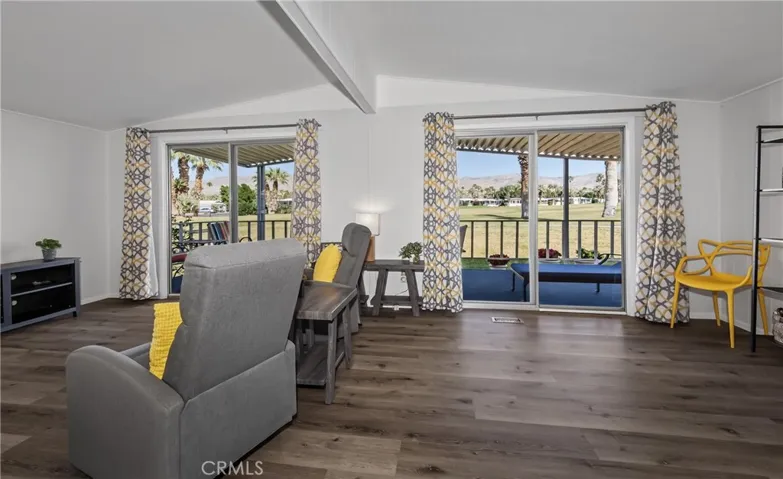 Wake up to sweeping golf course views in this beautifully updated 2-bedroom, 2-bath home located in the highly sought-after Hidden Springs 55+ community in Desert Hot Springs. Perfectly positioned right on the 9-hole golf course, this home features a spacious wrap-around porch-an ideal spot for morning coffee, evening sunsets, and enjoying the peaceful desert scenery.