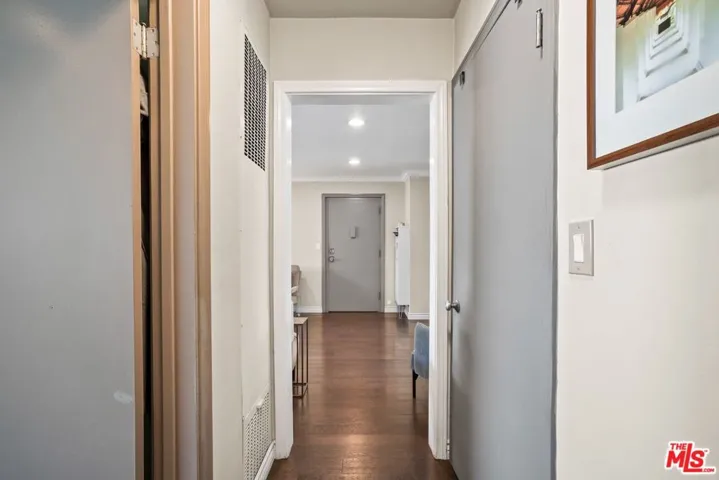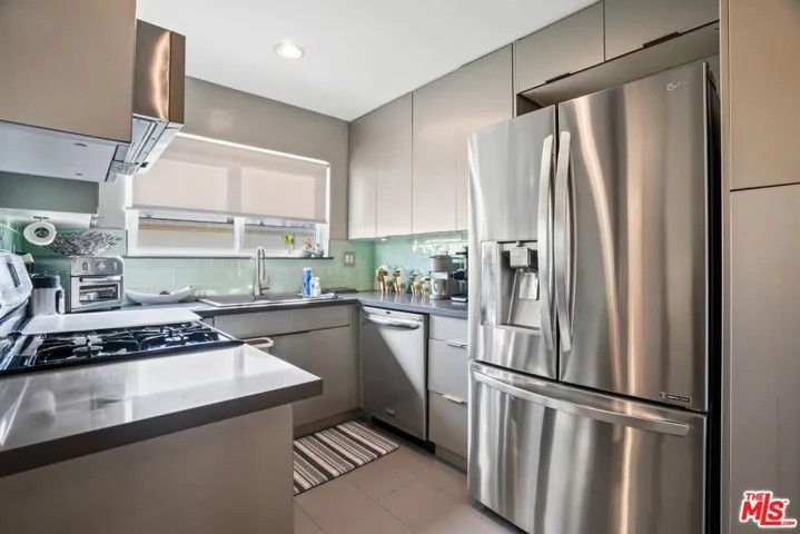 Metropolitan Urban Chic Oasis in Santa Monica! Exclusive controlled-access 14-unit courtyard enclave with lush landscaping. This top floor retreat with serene greenery views. Rich textured engineered wood floors across the entire unit with an expansive living room anchored by a classic brick gas fireplace. There is a seamless transition to the outdoors through elegant French doors to redone full balcony. Architectural depth is defined by elegant crown moldings and recessed lights in all rooms. Substantial full dining room that’s capable of housing a full scale table, New grey wood sleek kitchen cabinetry and stainless steel appliances with quartz countertops with beautiful glass tile backsplashes and full granite sink. In-unit full size gas laundry provides ultimate in-home convenience and an updated dual- pane Milgard windows to optimize thermal insulation. Generously sized bedroom scaled to accommodate a dedicated workspace, Redone walk-in shower room with integrated bench seating and double vanity. Secured gated parking with storage and Low homeowners dues.Premier location that balances residential tranquility w/immediate urban access. Perfectly positioned near World-Class Medical hubs St. John’s and UCLA. Short distance to UCLA campus and public transportation and Close to Bristol Farms, Whole Foods, Trader Joes and Erewhon