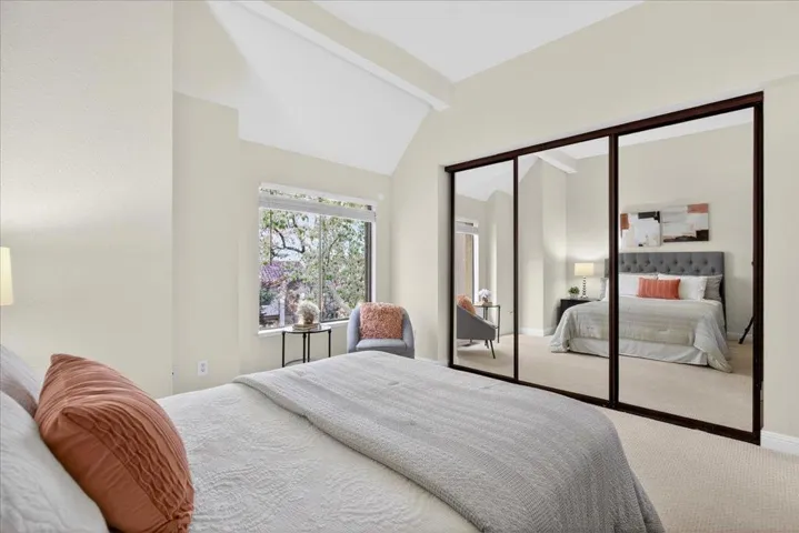 Wow! $3,000.00 Closing cost credit to buyer. Immaculate, remodeled townhouse style condo. Excellent location, and affordability for all the upgrades in place. Beautiful views of Sequoias and flowering trees. Sunny great room with laminate flooring, recessed lighting, marble slab gas fireplace, open bright great room for entertaining or relaxing. Living room flows into dining room, kitchen and French door, huge picture window looks out to back garden, quartz countertops, stainless steel appliances, open compartment sink, beautiful white shaker cabinet package all throughout home. Three beautifully remodeled bathrooms, two master bedroom suites with vaulted ceilings, views, mirrored wardrobe doors, full laundry, smart home temperature controls, central heating and A/C. Storage,new concrete and fencing in backyard.parking space is right outside the back gate, just steps into your home and kitchen. Water and garbage paid thru HOA, Sparkling pool, tennis courts, hot tub, walk, jog, or bike to The Iron Horse trail, parks, coffee houses, great restaurants, approximately 20 minute walk to downtown or BART, minutes to Hwy 680 and 24. Charming community with lots of open area green spaces, terrific neighborhood, dog friendly. Location, luxury, and amazing lifestyle.