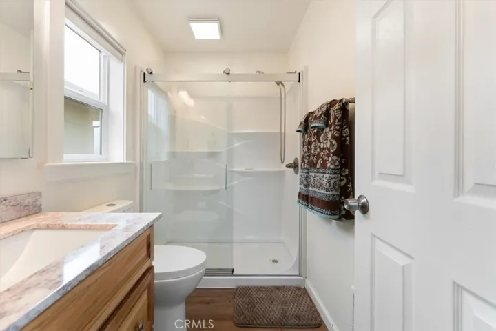 With approximately 2300 sq ft of living space, this home was remodeled in 2019 and thoughtfully designed for comfort and style. The main house features 2 bedrooms, 2 full bathrooms, and a bonus office room that can easily convert to a 3rd bedroom. The luxurious master suite is a true retreat, boasting vaulted alder ceilings. large walk-in closet, & master bathroom featuring a custom tile dual-sink vanity and walk-in shower. The living room is designed to capture the stunning views, with a window wall that floods the space with natural light. A cozy wood stove fireplace insert with a custom hearth and built-in shelving add charm and functionality to this inviting space.