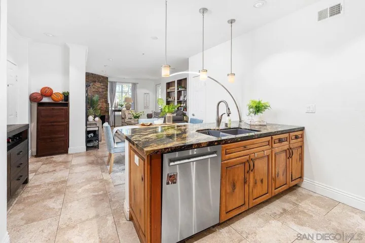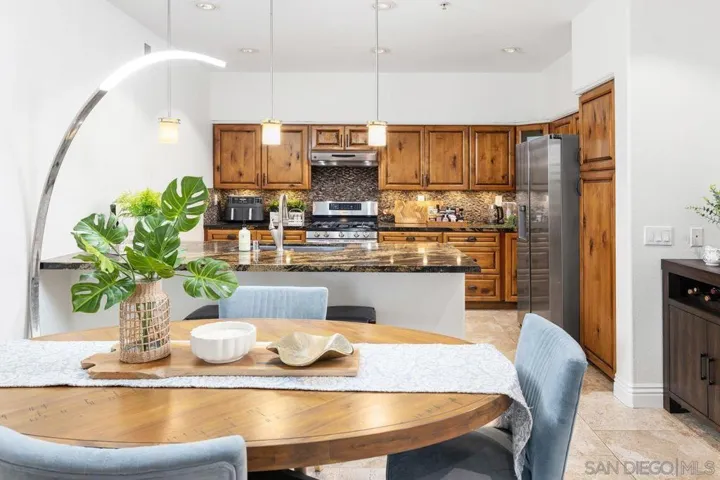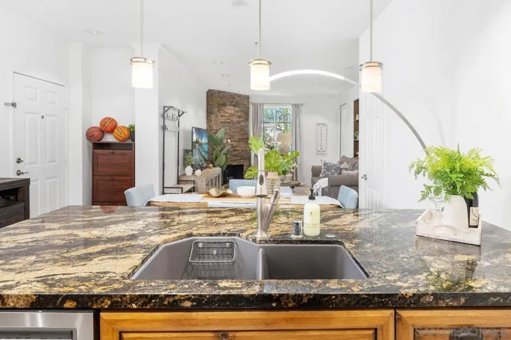 Welcome home to this beautifully upgraded two bedroom plus private den/office corner residence in the gated community of The Heights, thoughtfully designed for seeking comfort, convenience, and access to top tier schools. Located in one of San Diego’s most desirable school districts, this home offers the rare advantage of having the elementary, middle, and high schools just steps away. Morning drop offs become easy and after school activities are effortlessly accessible. Inside, the home is filled with natural light throughout the day, creating a warm and uplifting atmosphere. As a corner unit, you will enjoy added privacy along with peaceful tree views from every window. The flexible third room offers the perfect space for a home office, study area, playroom, or guest room. The kitchen is both stylish and functional, featuring Brazilian granite countertops with elegant pendant lighting, stainless steel appliances including a newer refrigerator, and a Spanish stone backsplash that extends to the fireplace. Recessed LED dimmer lighting throughout, interior designer paint, and flooring with no carpet deliver a clean and modern feel that is easy to maintain. Central HVAC ensures year round comfort. The Heights offers resort style amenities where you will enjoy a pool, spa, clubhouse, and fitness center. The HOA covers water and trash. Parking is convenient with a private garage plus an additional assigned space nearby. Enjoy close proximity to shopping, groceries, and restaurants in One Paseo and Del Mar Highlands and Carmel Valley Recreation Center and library nearby. Just minutes to I-805, I-5, and 56 freeway and the beautiful beaches of Del Mar/Torrey Pines. A rare opportunity to own a bright and private corner residence in Carmel Valley, where top rated schools, inviting surroundings, and everyday convenience come together to create the ideal lifestyle.