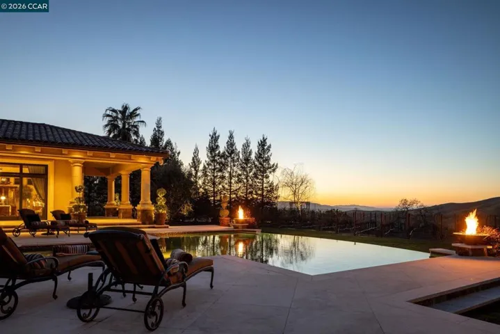 1st time on market. A work of art custom built by owners. A labor of love on top of Blackhawk Country Club’s Eagle Ridge Dr. Bella Diablo Vista gated estate. Award-winning designs, custom-curated features, discerning vision of innovative designers, talented artisans, renowned builders. Tuscan villa meets California’s fresh, light-drenched indr/outdr lifestyle. 1.17+/-acres borders parkland. Venetian plaster walls. Custom quarried travertine flrs inside & out. Soaring coffered ceilings. Custom iron/millwork. Radiant heated flrs. Recessed LED lights. Dual pane Marvin drs & windows. 10,500+/-SF living space. 9383 +/-SF 2-level main home. 5 en suite bdrms. 6.5 bths w/main-level guest suite. 2 staircases. Elevator. Executive office. State-of-the-art movie theater. Climate controlled 1200-bottle wine rm. Formal living & dining rms. Great rm w/walk-around bar. Fam rm. Chef’s kitchen. Dog washing rm. 1138+/-SF 1 bd/1ba detached guesthouse. Infinity-edged pool, spa. Gas frpit. Outdr kitchen. Terraces. 350 Cabernet Sauvignon grapevines. Olive & fruit trees. State-of-the-art security system/cameras. Solar panel system. 5-car garage. Near clubhouses, golf courses, fitness ctr, sprts complex, tennis cts, Blackhawk Plaza,downtown, freeways,Livermore Valley Wine Country,top-rated SRVUSD schls. Views: Ridge