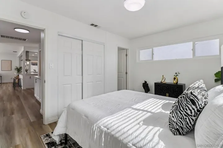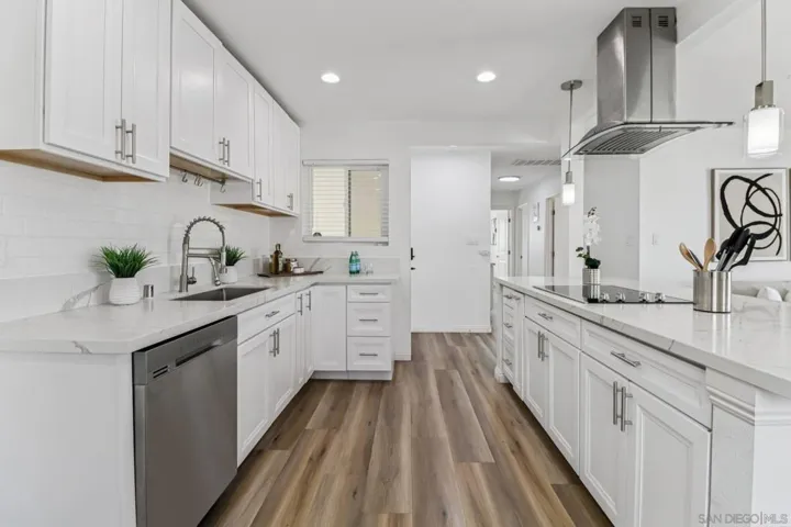 Dream Home in the Heart of Kearny Mesa! Step into this beautifully upgraded 3BR/2BA single-story gem just one block from Convoy Street’s world-famous dining scene — San Diego’s ultimate foodie destination. The home blends style, comfort, and convenience with an attached 2-car garage, ample driveway and street parking, plus gated RV parking for your toys and extra vehicles. Inside, you’ll find luxury vinyl plank flooring throughout, a modern open-concept kitchen with stone counters, subway tile backsplash, soft-close cabinetry, stainless steel appliances, and a spacious island that connects seamlessly to the dining and living spaces — perfect for entertaining or relaxing at home. Enjoy year-round comfort with dual-pane windows, central AC/heat with Nest thermostat, tankless water heater, recessed lighting, and an epoxy garage floor. Both bathrooms are updated and feature walk-in showers, glass doors, and rainfall showerheads. The primary suite offers a private retreat with its own updated ensuite bath. The fully fenced backyard includes a lush lawn and large patio ideal for BBQs and gatherings or possible opportunity for an Accessory Dwelling Unit (ADU). Refrigerator, washer, and dryer are included. Centrally located with quick access to the I-805, 163, 52, and I-15, plus the Othello Ave pedestrian bridge into Clairemont just down the street. This Kearny Mesa home truly has it all — move-in ready, beautifully upgraded, and minutes from everything San Diego! This also could also make for a great short term rental due to its amazing location and walkability.
