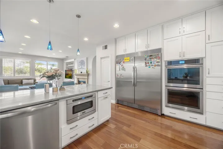 This pristine executive home is now available for lease and presents a striking first impression, with attractive neutral wall tones, smart plantation shutters, and handsome hardwood flooring. Step into the inviting entry that opens to elegant formal living and dining rooms, highlighted by a warming fireplace, ideal for entertaining or quiet evenings at home. The oversized kitchen is both stylish and highly functional, featuring abundant storage in crisp white cabinetry, sleek countertops, a dining counter, and premium stainless appliances including a multi-burner range with hood, built-in refrigerator, double ovens, and the walk-in pantry is a real plus. A built-in meal-planning desk sits conveniently adjacent to the family room, which offers its own cozy fireplace and an easy flow for everyday living. A private executive office on the first level is enclosed by attractive glass French doors, plus a desirable downstairs bedroom and private bath completes the main level. Upstairs, the expansive primary suite is a true retreat, complete with a separate sitting area that shares a dramatic see-through fireplace. You will luxuriate in the spa-inspired primary bath with soaking tub, separate shower, and dual vanities, plus a large oversized walk-in closet. Three additional bedrooms, and a convenient upstairs laundry area completes the upper level, allowing plenty of room for residents to enjoy comfort, and convenience for everyone. The private backyard is designed for relaxation and entertaining, featuring an adjustable patio cover, so you can enjoy your sunny or shady moments outdoors, built-in BBQ center, small grassy yard, and a sparkling pool and spa (including safety fencing to protect the little ones). This Serrano Heights property attends the finest schools, and is near shopping, restaurants and so much more. Your own private oasis for year-round enjoyment awaits.
