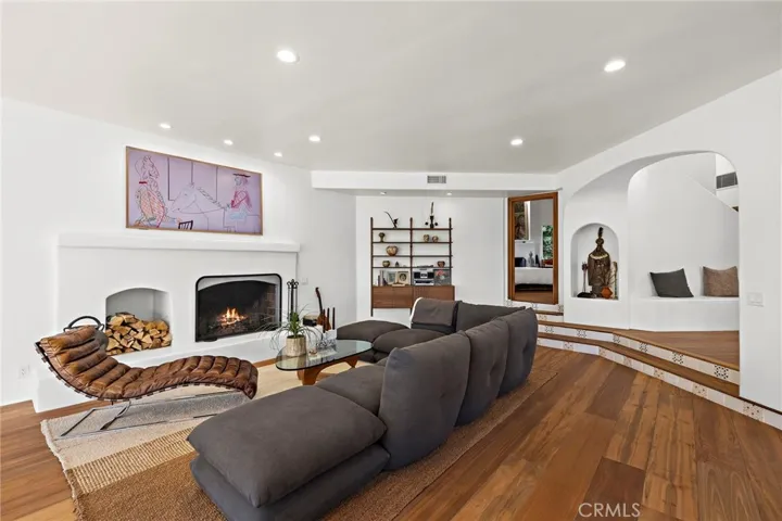 The main level unfolds with a dramatic living room anchored by a statement fireplace, an dramatic Island with seating, a bar, separated dining area, and intimate wine lounge. A private guest suite with fireplace, spa-style bath, and direct outdoor access enhances the thoughtful floor plan. A dedicated laundry room is conveniently located on this level.