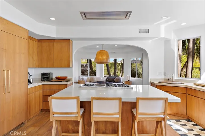 A fifth bedroom functions as a fully self-contained private suite with its own kitchen, washer and dryer, walk-in closet, private bath, and a private outdoor terrace with mountain views.