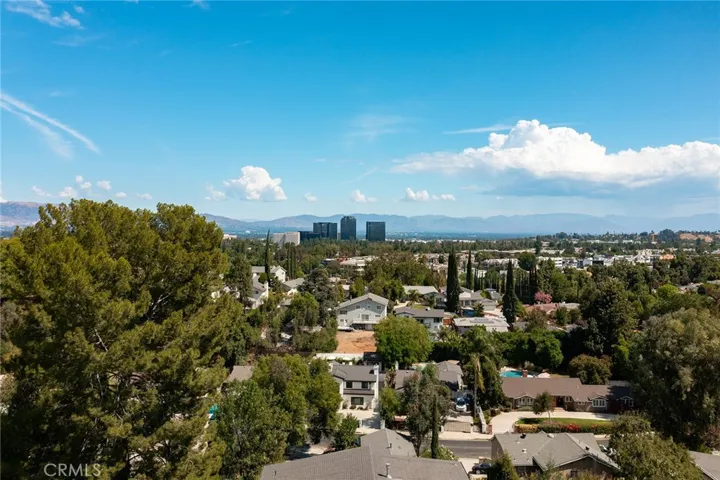 Gated modern estate newly constructed in 2024 with newly built pool & spa located South of the Boulevard with Valley, mountain, & city light views! Privately tucked away and hidden from the street, the property is situated down a long gated driveway with pedestrian access and flanked by tall growth hedging. Oversized parking can accommodate 10 cars plus there is direct access to an extra deep 540 SF 2-car garage. The interiors boast meticulous craftsmanship, designer finishes, and almost every room looks out to gorgeous views. A glass pivot entry door opens to a grand foyer where you’ll find a completely open floor plan filled with natural light from sweeping glass doors that open to the vistas beyond. The chef’s gourmet kitchen boasts massive center island with breakfast bar seating, stainless gourmet appliances, custom soft close cabinetry with quartz counters, separate wine fridge, and great pantry space. The kitchen opens directly to all living spaces including the formal dining room, the spacious family room with stone fireplace, and separate separate den – all rooms highlighted by glass pocket doors & sliders that open to a sprawling wraparound balcony deck with seating area that overlooks the amazing Valley & mountain views. A lower level movie theater has a full bathroom, access to the exterior, and can alternatively be used as a guest suite. Ascend a stunning floating glass and iron staircase to the upper level where you’ll find four well appointed bedrooms including the luxurious primary suite featuring stone fireplace, pocket doors that open to a balcony deck overlooking the gorgeous views, expansive walk-in closet, and sumptuous en-suite bathroom with custom floating vanity with dual sinks, designer tiling, walk-in steam shower with multiple shower heads, soaking tub, and separate toilet room. The three additional bedrooms have walk-in closets and access to their own bathrooms. Two of the rooms have large sliders that open to the backyard and the other opens to a large balcony deck overlooking the views. The resort styled backyard features brand new 2025 built pool and spa, large wraparound patio for lounging and outdoor dining, BBQ center, and grass lawns with lush landscaping. Desirably located adjacent to dining & shopping at the Calabasas Commons, Topanga Canyon shops/eateries, Westfield Topanga Mall/Village, Warner Center, hiking trails & minutes to Malibu.