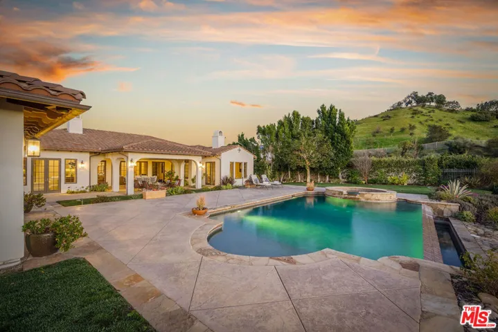Set behind the gates of one of Calabasas’ most coveted guard-gated communities, this exceptional single-story estate offers an uncompromising expression of privacy, scale, and refined California elegance. Perfectly positioned against the protected backdrop of the Santa Monica Mountains Conservancy, the property commands unobstructed views and a rare sense of tranquility. A romantic courtyard entry introduces the home with understated sophistication, where custom wrought iron details and a statement fireplace create a memorable arrival. Inside, soaring vaulted ceilings, oversized architectural openings, and expansive French doors define the interiors seamlessly blurring the line between indoors and out while flooding the residence with natural light. Designed for effortless living, the floor plan unfolds with intention and balance, anchored by a secluded primary suite featuring its own fireplace, private sitting lounge, and serene mountain vistas. Each secondary bedroom is ensuite, thoughtfully scaled, and designed for ultimate comfort. Multiple fireplaces throughout add warmth and timeless character.At the heart of the home, a chef’s kitchen pairs elevated design with professional performance an oversized island and top-tier appliances creating a natural gathering space equally suited for intimate mornings or sophisticated entertaining. The grounds evoke a private resort experience, complete with a sparkling pool and spa, outdoor culinary pavilion, and a detached cabana with fireplace and outdoor bath. A separate guest suite with its own entrance offers elevated flexibility for extended stays or private accommodations.Residents enjoy access to exclusive community amenities including concierge-level services, a private clubhouse, fitness center, tennis and pickleball courts, basketball court, resort-style pool, and curated recreation areas all within the highly regarded Las Virgenes School District. A rare offering defined by quiet luxury, architectural grace, and an unrivaled sense of place.