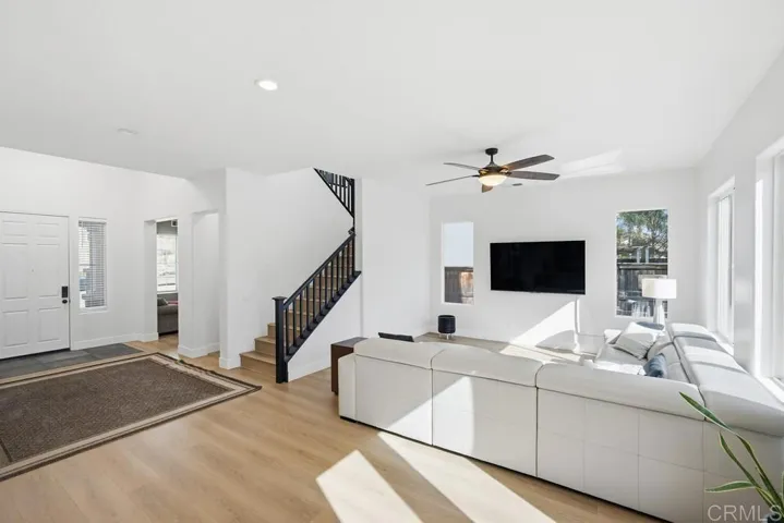Beautifully renovated in 2024, this expansive 4BR/3BA home offers approximately 3,037 sq ft of thoughtfully designed living space, including a convenient bedroom and full bath on the main level. With a flexible layout featuring an upstairs loft and front flex room, the home easily adapts to multigenerational living, remote work, or growing households. Located within the highly sought-after Temecula Valley Unified School District and situated in a desirable neighborhood with no HOA, this move-in ready residence combines modern updates, functional space, and everyday convenience. Extensively refreshed by the current owner, the interior showcases updated flooring, a bright neutral palette, and contemporary finishes throughout. Upon entry, a front flex room provides the perfect space for an office, den, or potential additional bedroom with the option to add doors for privacy. The floor plan opens into generous living and dining areas filled with natural light, creating an easy flow for both daily living and entertaining. The kitchen connects seamlessly to the family room and backyard, allowing for effortless indoor-outdoor living. Large windows and french doors invite in natural light while offering views of the private rear yard. Upstairs, the oversized loft serves as a secondary living space, media room, or play area, and can be converted into an additional bedroom if desired—adding to the home’s versatility. The primary suite features a beautifully updated bath with freestanding soaking tub, oversized walk-in shower with rainfall fixture, dual vanities, and ample storage. Secondary bedrooms are generously sized and share an updated hall bath with dual sinks. The backyard is designed for low maintenance and maximum usability, offering an expansive concrete patio ideal for outdoor dining, relaxing, or entertaining, complemented by drought-tolerant landscaping that provides a clean, finished look without heavy upkeep. With its recent renovation, adaptable floor plan, prime location, and absence of HOA, this home presents an exceptional opportunity for buyers seeking space, flexibility, and turnkey comfort.