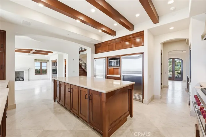 This Italian-inspired custom villa is in the prestigious guard-gated community of Ritz Cove in Monarch Beach, California. It is situated on a quiet cul-de-sac street and is neighboring the Ritz-Carlton and Waldorf Astoria resorts. This estate includes 4 spacious en-suite bedrooms and a detached private casita, 6 bathrooms an oversized subterranean garage with a separate storage/work area. The main floor Features a formal living with a fireplace, dining room and a large chef’s kitchen with high-end appliances, a walk-in pantry, and an eat-at island. The kitchen flows into an oversized family room with built-in entertainment, fireplace and access to the resort style backyard designed for entertaining with a pool, spa, built-in BBQ, all to enjoy the ocean backdrop and stunning Catalina island and sunset views. The Upper Level includes a large primary suite with a fireplace, oversized dressing room stye closet with custom built cabinets, the two secondary en-suite bedrooms feature walk-in closets, all of the bedrooms have balconies. This level also houses a built-out office and a secondary entertainment area. The subterranean level is dedicated to leisure, featuring a custom home theater with oversized recliner seating, a flex room, ideal for a gym or yoga area, and an entertainment room with a wet-bar and wine fridge. The front courtyard features a majestic stone-faced fireplace. Ritz Cove is a private gated community that also includes a private entrance to walking and bicycle paths leading directly to Salt Creek Beach. It is minutes away from Dana Point Harbor and the upscale shops and dining of the Lantern District.