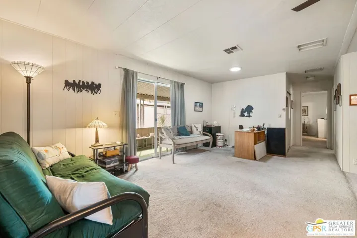 Welcome to your dream Palm Springs lifestyle in this charming manufactured home nestled in the highly desirable Palm Springs View Estates. This spacious 2-bedroom, 2-bathroom manufactured double-wide home in Palm Springs View Estates is seeking its next owner. This home offers the option to keep it as is or transform it into your own. Palm Springs View Estates is a 55+ community that boasts community pools and spas. There’s also covered carport parking for at least two cars, and the primary suite features a spacious ensuite bathroom. Welcome to your new home! The 2-bedroom, 2-bathroom home has a spacious interior of 1440 square feet. It’s conveniently located near stores, restaurants, two public 18-hole Arnold Palmer-designed golf courses, and minutes away from Agua Caliente Casino. Move-in conditions include furnishings and a spacious storage shed.The open floor plan features am additional versatile Screened Den/California Room, perfect for enjoying the cooler seasons in comfort and style.Affordable living under rent control with space rent at approximately $714 per month, including water, sewer, and trash, makes this a great value for this prime location. (Park requires income of 3x space rent and park approval prior to closing.)The community amenities are abundant, including three sparkling pools and spas, walking trails, and a clubhouse featuring a gym, billiards, ping pong, a community kitchen, and a cozy TV lounge.However, please note that per community rules (CC&Rs), a second resident may be 45+. Owner-occupants only, with no rentals, to preserve the peaceful and neighborly environment. Click on Video Tour for walk through – Additional photos coming soon –