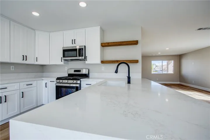 Feels like a BRAND NEW HOME only Better, We Have LOW Property Taxes! This beautifully renovated single-story home in Menifee, CA, offers 3 bedrooms & 2 Full Baths in an open-concept floor plan that seamlessly blends the kitchen, living, and dining areas to maximize space and natural light! Loaded with Upgrades, some of the highlights include Brand New White Shaker Cabinets, Quartz Countertops with Waterfall Edge, Brand New Stainless Steel Appliances, Fridge Included, New Wood Laminate Flooring throughout, Inside Laundry, Finished Attached 2 Car Garage & Newly Installed Lush Landscaping Front & Rear! The Primary Suite is a private retreat located at the rear of the home, complete with 2 large closets, a spa-like full bathroom, & private door to back yard featuring a patio & grass area designed for outdoor dining and Southern California relaxation. This home is truly move in ready, located close to highly rated Menifee Schools, Shopping Centers, Parks and San Jacinto Community College! Centrally located between the 15 and 215 Freeways for easy commuter access and weekend getaways.