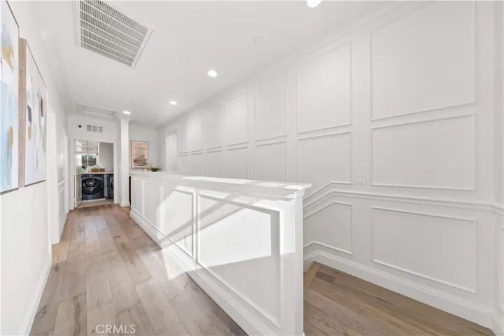 Upstairs features solid hardwood flooring throughout – no carpet, along with custom feature walls and designer millwork in each bedroom. A rare private driveway offers added parking, privacy, and everyday convenience, a feature rarely found in the community.