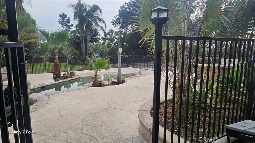 Set behind gates, down a long private driveway, this rare compound-style property offers ~ 40,000 sq/ft of usable land, designed for living, entertaining in most desirable semi-rural bordering Sylmar and Lake View Terrace — walking distance to the Golf Course. Offered is a 3bed|3bth w/ ~2,250 Sq/ft 2 Levels. The main home features vaulted ceilings, multiple skylights, and wide-plank light oak flooring throughout. Large sliding glass doors open directly to the courtyard, creating seamless indoor-outdoor flow. Interior includes 2 separate dining areas, Spacious living room, Fireplace, Large, and 3 light-filled abundant cabinetry bedrooms. The house comes with Central AC& Heater, besides the Two downstairs rooms that are equipped with brand new wall-unit AC/Heater systems for individualized comfort. The downstairs bedroom connects to a bathroom featuring a walk-in shower designed for easy accessibility, making it especially suitable for elderly residents or guests seeking convenient step-in access. It offers a striking black-and-white marble-style countertop, vanity, abundant cabinetry, and oversized windows overlooking greenery. The kitchen is designed for both function and style, features white shaker cabinetry, marble-style countertops, stainless steel appliances, peninsula seating, sleek black hardware accents and an entry from outside. A secondary bathroom located off the kitchen area includes a washer and dryer setup and offers a separate exterior entrance, providing practical convenience for laundry access and outdoor use. Both, this and the upstairs bathrooms have marble-style tile, frameless glass shower enclosures, floating vanities, black and brass fixtures, walk-in showers. The gated Resort-Style Outdoor Grounds include a Beach-entry Heated Pool, Jacuzzi spa, Built-in outdoor grilling area, Natural gas fire pit, covered outdoor dining structure beneath mature trees, Multiple seating areas with Raised brick planters, mature landscaping and shaded lawn zones surrounded by palm trees. Detached garage is ideal for 2 car parking, storage, hobbies, workspace. A large flat parking area accommodates trucks, multiple vehicles, boats, and recreational vehicles. The Rent Includes ALL Utilities if rented separately from the 2 bed/2bth 1200sq/ft House on the same lot -all within a peaceful estate setting with convenient Valley access.