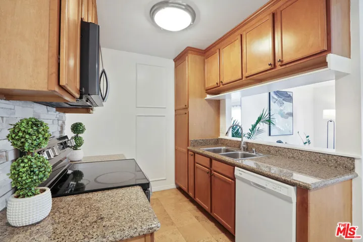 FHA approved. Enter at 2nd gate on Marigold. Special Opportunity-Top floor-corner unit-move in ready! This 2 bed 2 bath, light filled condo boasts open views, exceptional privacy and a quiet setting in highly desirable location within the community. The unit is thoughtfully designed for comfort and style, featuring elegant wainscoting, real wood kitchen cabinetry and beadboard detailing in the primary bedroom. Granite flooring in both the kitchen and bathrooms adds a refined and elevated finish. The residence has been updated with fresh interior paint, new carpeting with double padding for enhanced sound insulation, newer windows with tempered glass and hot and cold barriers, new light fixtures, a ceiling fan, and a new Siemens central electric panel! The remodeled bathroom showcases quality finishes, including a Kohler toilet. Located within a gated, resort style community surrounded by mature trees and landscaped gardens. Amenities include multiple swimming pools, spa, renovated laundry and fitness facilities, a gym with yoga studio, barbecue areas, and a well appointed clubhouse. Lots of guest parking. Conveniently situated close to the freeway, the community maintains a peaceful atmosphere without freeway or Sepulveda noise. This exceptional condominium offers a harmonious blend of privacy, quality upgrades, and resort style living in a highly sought after setting. Broker and agents do not represent or guarantee the accuracy of the square footage, income, expenses, condition, development potential,bedroom/bathroom count, lot size or lot lines, dimensions, permitted or non-permitted spaces, or school eligibility. Buyer is advised to independently verify the accuracy of all information with appropriateprofessionals. There are no warranties or guarantees, buyer to rely solely on his/her/their own findings.