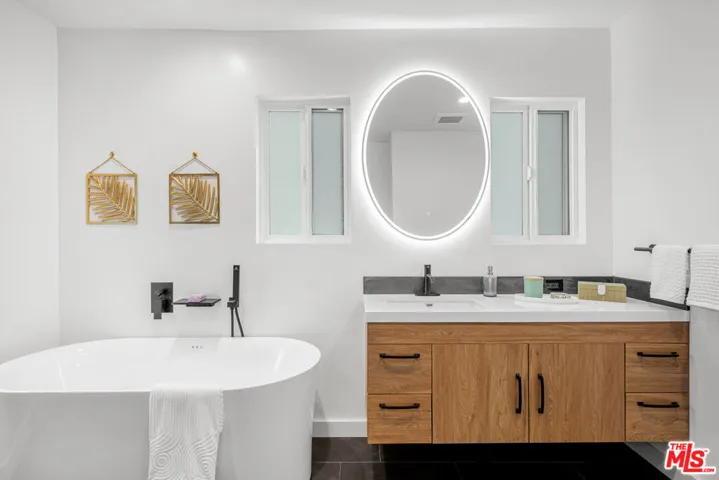 An Unparalleled Hollywood Hills Retreat. Experience the rare opportunity to own a private compound on a 12,000+ sq ft street-to-street lot in Lake Hollywood. This reimagined 1930s Art Deco Modern estate blends timeless architecture with contemporary comfort. Beyond the grand entrance, a spiral staircase introduces a home framed by captivating views. The chef’s kitchen is a showpiece with brand-new Thor appliances including a wine fridge, a custom microwave drawer, bespoke cabinetry, and ample prep space. The primary suite is a private sanctuary, with a coffee bar, patio for sunrise coffees or sunset toasts, sleek fireplace, spa-inspired bath with dual vanities, oversized shower, custom closet, and beauty station. An upstairs guest suite offers a spa bath with soaking tub, while a main-level bedroom completes the layout. Throughout the home, thoughtful details shinefrom the original fireplace with reading nook to discreet under-stair storage. Expansive dining, living, and family rooms flow seamlessly outdoors, embracing California living. The resort-style backyard is landscaped with drought-tolerant greenery, spa patio, and spacious entertaining areas. With room to garden, add a pool, or build an ADU or guest house, the property offers flexibility without compromise. Recent upgrades include new electrical, plumbing, dual HVAC, roof, and windows, plus in-unit laundry on the bedroom level. Perfectly located near premier dining, shopping, entertainment, and freeway access, this estate offers both privacy and proximity. Welcome to a lifestyle defined by elegance and distinction.
