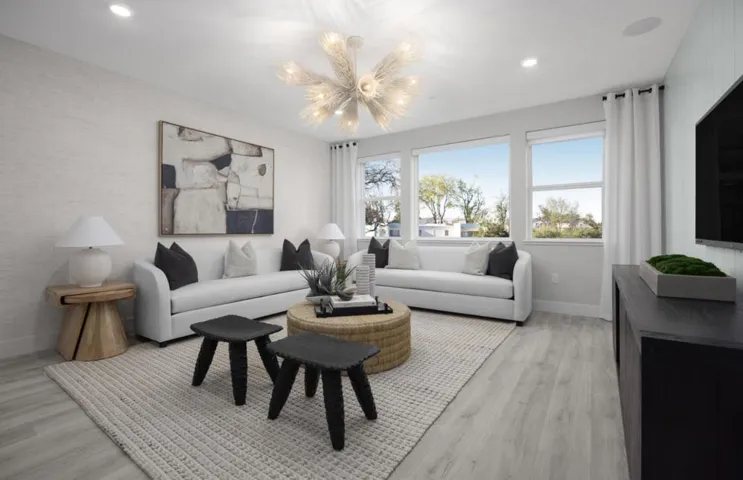 Nestled in the charming city of Campbell, this delightful 2-bedroom, 2-bathroom home offers a comfortable 1,678 square feet of living space. The kitchen is equipped with electric amenities such as a cooktop, built-in oven, and oven range, complemented by a pantry for ample storage. The flooring throughout the home includes durable laminate and elegant tile. The open-concept kitchen/family room combo features a cozy fireplace, perfect for gatherings. A dining area with a dining bar provides additional eating options. The property boasts energy-efficient features, including solar power with battery backup, and offers heating and cooling via a multi-zone setup controlled by individual room controls. The high ceiling and walk-in closet are added bonuses for comfort and storage. Laundry facilities are conveniently located on the upper floor with a 220V electric hookup. Situated within the Campbell Union Elementary School District, this home is a perfect blend of convenience and modern amenities.