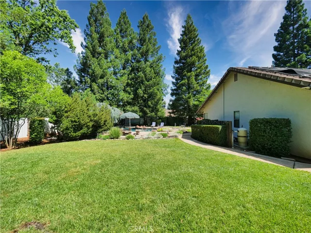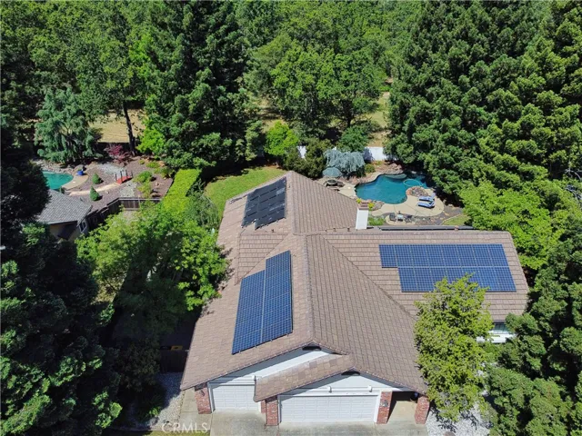 Large One Story Pool Home with Large Back Yard. Don’t miss this turnkey home in Stonegate Village. Kit & baths are tastefully updated. Warm colors, tile floors, both bathrooms have heated floors, Granite counters, & New Windows are among the many upgrades. Newer HVAC & Water Heater. Built in pool w/newer equipment for summer fun. Garden boxes, fruit trees and blueberry bushes complete this welcoming back yard. The side has room for RV/Boat storage. Walk to the nearby CSD Park & Community center or enjoy a hike along the New York creek trail. Large master bedroom with bathroom. Laundry room, solar panels paid off and included also alarm system included. Large back and front yard, new landscaping front and back yard. Backyard has a gate access to a beautiful nature walk site. 3 car garage and large back yard to build adu’s. Home is handicap accessible. Seller is open to including the furniture. Front and back yards have redwood trees. Lots of custom storage cabinets located in the garages. Master bedroom has custom walk in closet.