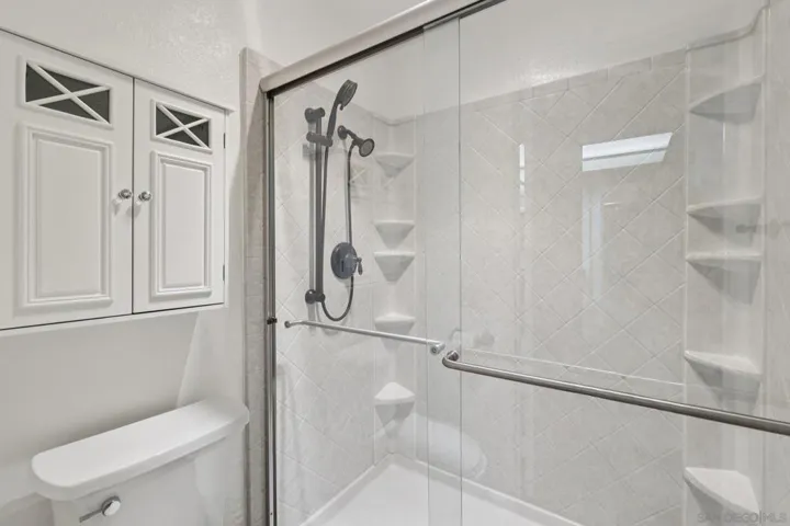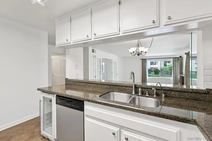 Located in the highly desirable community of Tierrasanta in San Diego, this beautifully updated & FIRST FLOOR 2-bedroom, 2-bathroom condo offers 1,118 sq ft of light-filled living space in a quiet, park-like setting. This corner unit overlooking a fountain and lush landscaping provides exceptional privacy and tranquility rarely found in condo living. Inside, you’ll find an updated kitchen with wine refrigerator and full-size refrigerator, fresh neutral paint, and modern easy-care flooring throughout. The spacious living room features a gas fireplace, creating a warm and inviting atmosphere. The functional layout includes an optional in-unit laundry space, a water filtration system, and generous storage—including additional patio storage. Includes one assigned parking space in a secure underground community garage, plus ample off-street guest parking. The HOA amenities enhance lifestyle convenience with community amenities including heated pool, spa, sauna, BBQ and picnic areas, and pickleball courts amidst beautifully maintained grounds. El Dorado Greens is primarily a smoke-free community. Short drive to admiral Baker Golf course. Will sell fast!