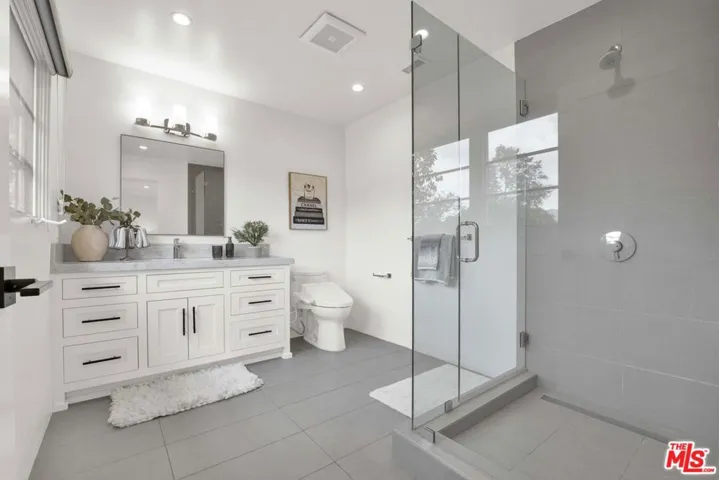 A stunning contemporary residence in the heart of Hancock Park, one of the most sought-after and convenient neighborhoods in Los Angeles. Rebuilt and redesigned in 2018 by Sorensen Architects, this home showcases modern sophistication and timeless style.The double-height entry opens into an expansive great room and chef’s kitchen, appointed with premium finishes and appliances, including a Sub-Zero refrigerator, Wolf double oven and range, dual sinks, Caesarstone counters, and a White Carrara Extra marble island. Skylights and French white oak floors fill the interiors with natural light, creating an airy and inviting atmosphere.Offering 5 bedrooms (4 upstairs, 1 downstairs) and dual staircases, the home’s layout is both practical and luxurious. The primary suite features a custom walk-in closet and spa-like bath with Kallista sinks, a Rift white oak vanity, Italian Bianco Gioia marble, and Porcelanosa tile. Additional upgrades include all-new plumbing, a new roof, LED lighting, Anderson E Series dual-pane windows, dual tankless water heaters, and dual-zone HVAC with Nest thermostats combining comfort, efficiency.