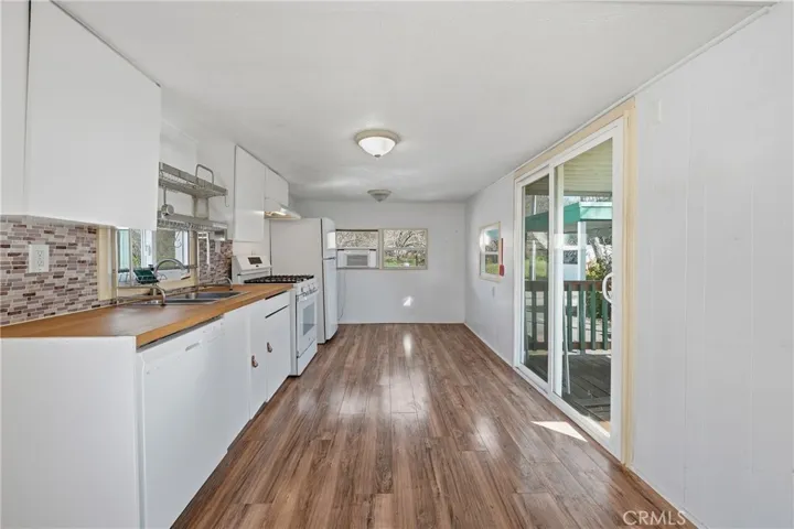 Updated 1964 single wide mobile home, move in ready. 55+ senior park. Home sits at back of park. 560 sq ft offers 1 bedroom 1 bathroom (3/4) walk-in shower with tiled flooring, plus bonus room with closet. Bonus room was once a bedroom and could be converted back if a wall and door is installed. Wall furnace for heat and 3 wall A/C units throughout. Bedroom is to the back of the home. Updated slider, some updated windows throughout, wood laminate flooring and ceiling fan in living room. Kitchen features dual sink, propane stove, dishwasher and refrigerator. Covered parking and covered porch, plus tuff shed in yard plus stackable washer/dryer in the shed. Walking distance to lake, parks, etc… About 45 minutes to HWY 101 or hour to I5. Space rent 585.00 a month/water, garbage and sewer are billed separately thru the mobile home park. MUST GET PARK APPROVAL!