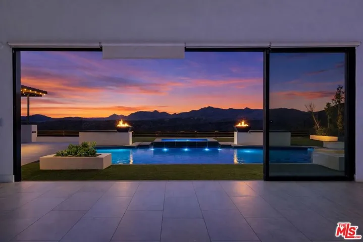 Lavishly styled and ideally positioned within the prestigious gated community of The Ridge in Porter Ranch, this extraordinary 5-bedroom, 5.5-bathroom estate spans approximately 4,800 square feet of refined living space and captures unobstructed, 360-degree panoramic mountain views from nearly every vantage point. Designed to elevate both everyday living and grand-scale entertaining, the home seamlessly blends timeless elegance with modern comfort, creating a truly resort-inspired lifestyle. A grand, light-filled entry welcomes you into a dramatic two-story great room adorned with soaring ceilings and expansive windows that frame the surrounding natural beauty. The open-concept layout flows effortlessly to the outdoors, embodying the ultimate Southern California indoor-outdoor experience. At the heart of the home, the chef’s kitchen is a true showpiece featuring top-of-the-line appliances, an oversized center island perfect for gathering, a casual dining area, walk-in pantry, and abundant custom cabinetry designed for both function and style. Step outside to your private backyard retreat, thoughtfully curated for both relaxation and recreation. The resort-style setting includes a sparkling pool and spa, custom-built grill station, cozy fire pit lounge, and a full basketball/pickleball court, all set against a breathtaking scenic backdrop with direct access to picturesque horse trails. Whether hosting sunset gatherings or enjoying quiet mornings with mountain views, this outdoor sanctuary delivers unmatched tranquility and privacy. Upstairs, the luxurious primary suite serves as a serene escape, complete with a spacious private balcony overlooking sweeping vistas. The spa-inspired bath features dual vanities, a soaking tub, oversized glass-enclosed shower, private water closet, and an expansive walk-in closet designed to impress. Generously sized secondary bedrooms offer walk-in closets and beautifully appointed baths, including a private en-suite ideal for guests. A versatile loft overlooking the great room provides additional living space perfect for a media lounge, office, or play area. Additional highlights include owned solar power for energy efficiency, a dual-car garage, premium finishes throughout, and a location that offers both privacy and convenience. Enjoy close proximity to award-winning schools such as Sierra Canyon and Porter Ranch Community School (PRCS), as well as parks, upscale shopping, dining, grocery stores, and everyday essentials all just moments away. This is a rare opportunity to own a view estate in one of Porter Ranch’s most sought-after gated communities, where luxury, lifestyle, and location come together in perfect harmony.
