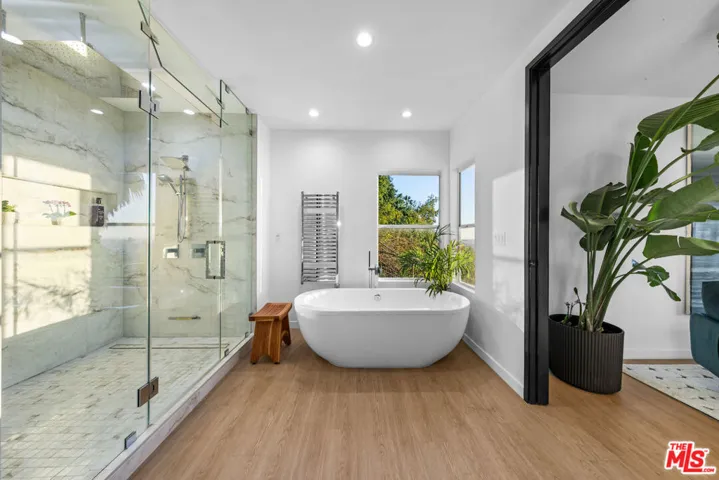 Perched in the prestigiousLos Feliz Oaks, this stunning contemporary masterpiece offers the perfect blend of architectural sophistication and tranquil retreat. Beamed double-height ceilings and floor-to-ceiling glass, the residence is bathed in natural light, framing breathtaking panoramic cityscape and sunset-colored vistas from nearly every room. The expansive open-concept floor plan seamlessly connects the living, den and dining areas, creating an effortless flow for high-end entertaining. Recently renovated, the home features a chef-inspired kitchen, designer bathrooms and sleek, new flooring throughout. The primary suite and three additional spacious bedrooms provide a versatile layout for modern living. Step outside to a private upscale lounge featuring an outdoor living room, soothing jacuzzi, fire feature and an inviting al fresco dining area perfect for sunset cocktails or quiet relaxation. Experience a fresh, modern lifestyle in one of LA’s most coveted neighborhoods. Home has a 2-car garage with high ceilings and electric car charging.