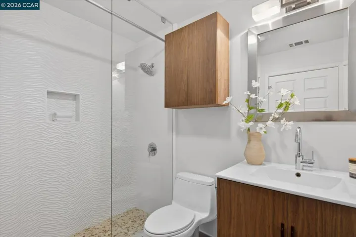This is a lifestyle location. Rarely does a home come available on Alamo Way. This west side court hosts exquisite custom homes…and it’s just two blocks from downtown Alamo and the Iron Horse Trail! This modern, updated home offers an incredible lifestyle. Enjoy the ease of single story living and the casual elegance of an open concept layout. The modern kitchen is a chef’s dream, with an abundance of cabinet & counter space, surrounding high-end appliances. Don’t miss the walk-in pantry that combines beauty with incredible storage space. Entertain your guests at the bar seating that opens into the large great room, offering plenty of space for dining, play, media & relaxation. A wall of windows offers views of the large, flat, and spectacularly private back yard. Gleaming hardwood floors throughout most of the home, along with beautiful tile in the entry, kitchen & bathrooms. Primary bedroom has a spacious bathroom with an oversized, dual headed shower, double vanity, a large walk-in closet, as well as access to the yard. 5 spacious bedrooms. Private backyard features a sprawling patio, large lawn, ornamental trees & room to grow. The lot is both wide & deep, with over 1/3 acre of flat land. Enjoy the view of Las Trampas ridge from the yard, or seek out trailheads nearby.