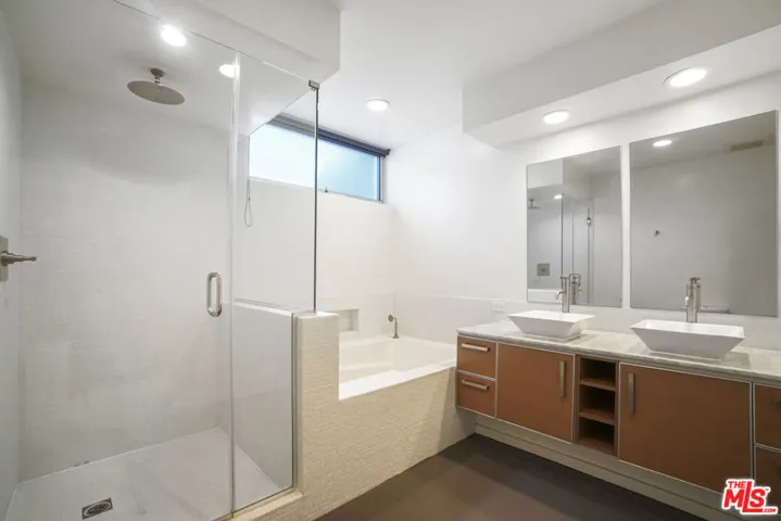Architectural Corner Loft in West Hollywood Fairfax District. Multi-level with 20′ ceilings and tons of windows, and only one common wall. Two bedrooms plus den and two and a half baths spread out over four levels and featuring two large balconies. Tons of closet space, designer baths, and kitchen. Small building with only 12 units and a short walk to Whole Foods, Laurel Hardware, Delilah, Isabel, and much more. Two assigned parking spaces underground with EV charger, guest parking, and a hot tub in the building. A rare find, and it won’t last long.