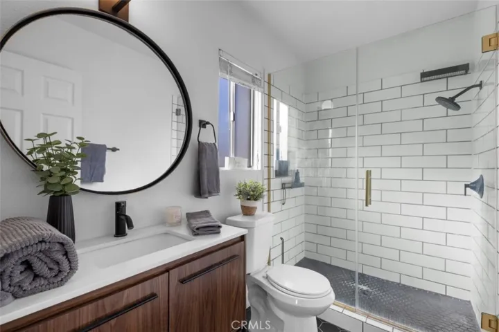 an updated kitchen with Silestone countertops, stainless steel appliances and custom cabinetry, a relaxing primary suite including a large walk-in closet, a spa-inspired bathroom with walk-in shower, and crisp architectural lighting and details throughout.