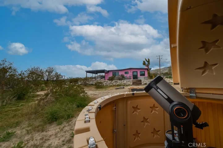 Pink Galaxy holds strong chromatic themes, original art, and is a star grazers dream in a special paradise. Halfway between Joshua Tree and Palm Springs exists a special medium between stars, city, alpine, and an always oasis climate. Magically cooler in summer and warmer in winter than its neighboring areas, large fruit trees grow next to stark Joshua Trees in this special zone of the desert due to its high water table, subterranean rivers, natural springs, creeks and marshes.