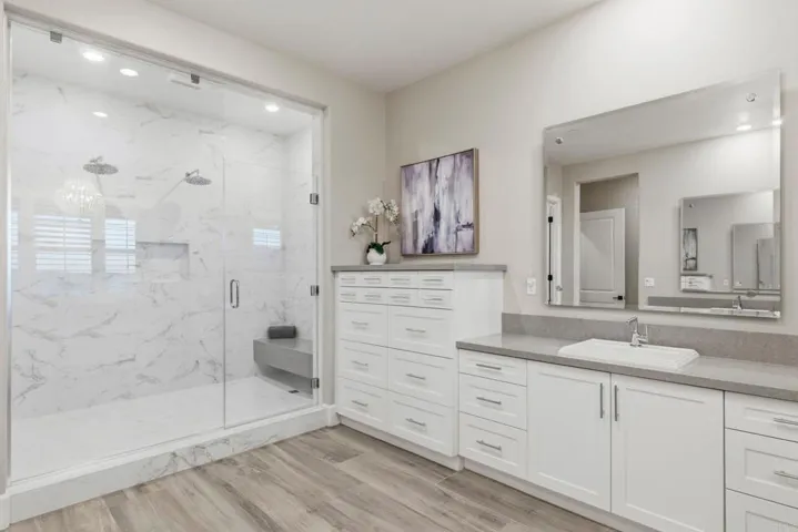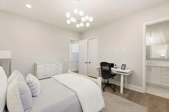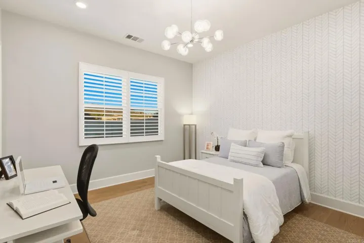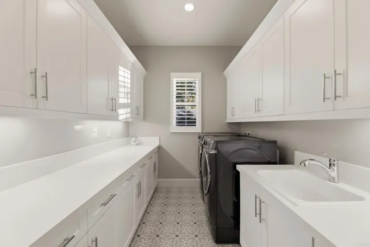Come experience the pinnacle of refined living in one of North County’s most coveted enclaves, The Lakes Above Rancho Santa Fe. Set within the exclusive Sterling Heights collection, this exceptional estate is gracefully positioned atop a private ridge, capturing sweeping panoramic views across the Santa Fe Valley and stretching west toward Del Mar and Solana Beach. Situated on over half an acre, the residence offers nearly 5,000 square feet of thoughtfully curated living space, encompassing five generously proportioned bedrooms and five-and-a-half baths. A grand entry with soaring ceilings introduces an airy, light-filled interior where refined finishes and architectural detail define each space. The open-concept design seamlessly connects the formal dining room, expansive great room, and gourmet kitchen creating an effortless flow for both intimate gatherings and large-scale entertaining. The chef’s kitchen is a statement in both style and function, featuring dual oversized islands that are perfect for culinary adventures and hosting guests. Contemporary porcelain tile backsplashes add a beautiful designer touch. The adjoining family room is anchored by a striking fluted marble fireplace, complemented by custom built-ins, shiplap detailing, and a board-and-batten feature wall blending warmth with modern sophistication. The main-level primary suite is a private sanctuary, framed by tranquil valley views. Its spa-inspired bath offers dual vanities, an oversized soaking tub, and a serene palette of soft greys and whites. A custom-designed walk-in closet with center island provides boutique-level organization and elegance. Upstairs, a generous loft offers flexible space for a media lounge, executive office, fitness studio, or playroom. An additional bedroom opens to a spacious view balcony overlooking Rancho Santa Fe and the rolling hills of Cielo, an idyllic setting for sunset evenings. Designed for the quintessential Southern California lifestyle, the resort-caliber backyard features a sparkling pool and spa, outdoor kitchen, manicured turf, bocce ball court, and a fire pit lounge perfect for hosting under the stars. Thoughtful enhancements include owned solar, automated shades, plantation shutters, upgraded designer lighting, crown molding, and an expansive four-car garage with additional on-site parking for up to eight vehicles. Residents of The Lakes enjoy proximity to the charming Village of Rancho Santa Fe, premier shopping, and convenient access to I-15 and CA-56. The home is located within the highly acclaimed Poway Unified School District, serving top-rated schools such as Del Norte High School and Del Sur Elementary School. At the heart of the community, The Crosby Club at Rancho Santa Fe offers optional membership opportunities, granting access to world-class golf, elevated dining, tennis, pickleball, a state-of-the-art fitness center, and a vibrant social calendar. This is more than a residence—it is a lifestyle defined by privacy, prestige, and effortless coastal elegance.