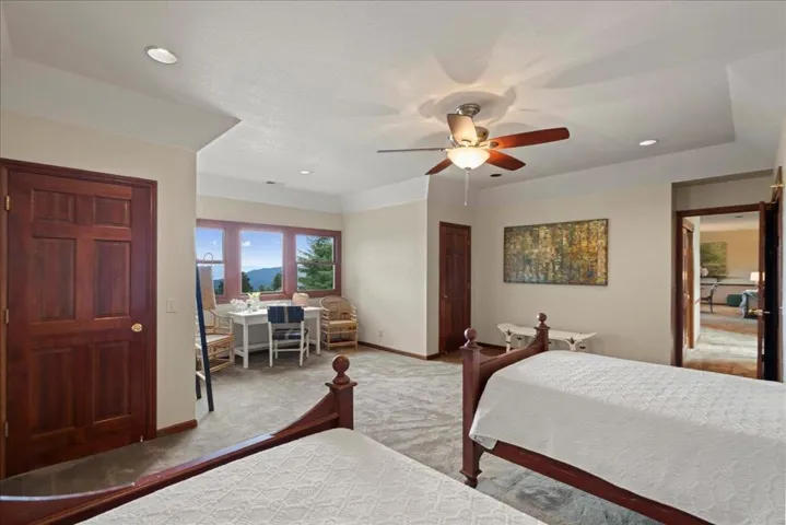 Absolutely stunning Skyline Blvd. estate featuring two residences & sweeping valley views. Perfectly positioned just 10 minutes to the Bear Creek overpass, this exceptional property offers the rare combination of serene mountain living with effortless valley access. The main house showcases soaring vaulted ceilings, open-beam architecture, & walls of glass that frame breathtaking vistas. Designed with uncompromising quality, the interior features a dramatic stone fireplace, refined finishes, & a chefs kitchen appointed with a professional Thermador range, dual dishwashers, wine refrigeration, custom cabinetry, & a discreetly integrated television. The primary suite is a private sanctuary with valley views, a spa-inspired bath, & its own patio. The main level is completed by two generously sized bedrooms, a full bath, & powder room. Upstairs, an additional bedroom with views, full bath, family room, & media room create flexible living & entertaining spaces. Every bedroom includes a spacious walk-in closet. Enhancing the versatility is a separate 3-bedroom, 1.5-bath guest house of approx. 1,260 square feet, complete with its own garage & private driveway, ideal for extended family, guests, or income potential. Award-winning Los Gatos schools further elevate this rare offering.