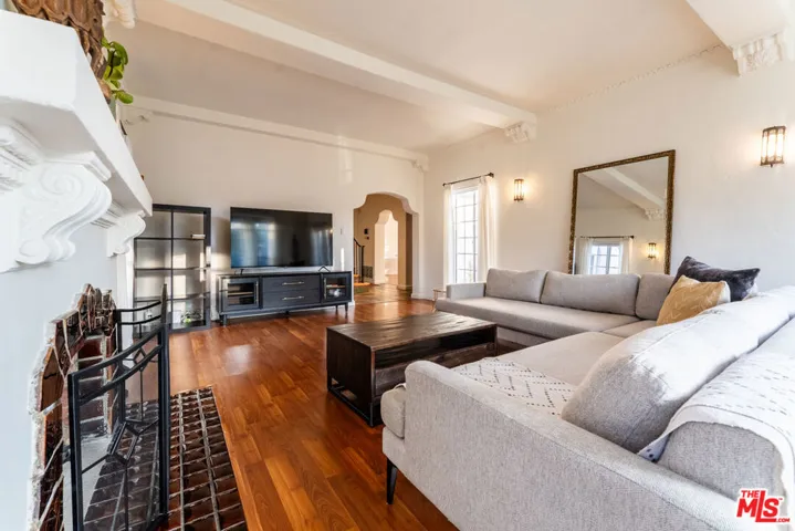 Beautiful View Park Spanish home with stunning original detail, features a charming courtyard in the front when you enter the home. Inside you will find an open floor plan with attractive flooring throughout and an abundance of natural light. The grand living room has high beamed ceilings, tall windows, and an elegant fireplace. The cook’s kitchen is well equipped and has a 6-burner range, granite countertops and tile flooring. There is also a spacious breakfast room with original cabinets as well as a light-filled formal dining room. The main floor also includes a vintage wood paneled bedroom with an attached bathroom. Upstairs are two bedrooms, one being a sizable master including two closets and one large bath. The backyard has a covered patio with built-in BBQ and a spa which is perfect for entertaining or just relaxing. The property is also centrally located near schools, parks, restaurants, Baldwin Hills Crenshaw Plaza, and Rave Cinema 15. There is also a newly built ADU on the property, which is currently rented separately, however, it can be leased along with the primary residence.
