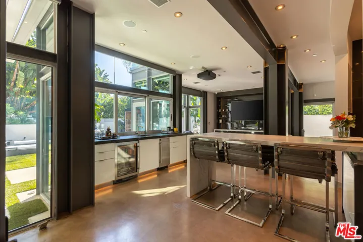 Exceptionally private architectural home crafted from steel, glass, and concretea bold statement in design, quality, and craftsmanship. Soaring ceilings, exposed commercial beams, and natural metals create a dramatic, gallery-like atmosphere, while expansive walls of glass fill the interiors with light and seamlessly connect every space to the outdoors. Polished concrete floors flow through open-concept living spaces, creating a sophisticated yet comfortable backdrop for elevated living. The chef’s kitchen features top-of-the-line appliances, custom cabinetry, and a seamless connection to the grand great roomperfect for both intimate gatherings and large-scale entertaining. Every detail, from architectural lines to designer finishes, reflects precision, artistry, and thoughtful design. The luxurious primary suite offers a spa-like retreat with a freestanding soaking tub and private outdoor access, while additional bedrooms and living areas provide light-filled, expansive spaces for family and guests. Outside, professionally landscaped grounds evoke a private resort, with a sun-drenched swimmer’s pool, tranquil water features, and multiple elegant dining pavilions. The outdoor spaces capture the essence of Southern California living, offering the perfect balance of grand entertaining and serene everyday enjoyment .This rare architectural residence unites visionary design, high-end craftsmanship, and seamless indoor-outdoor flow, creating a fully private sanctuary where art, luxury, and lifestyle converge in one extraordinary home.