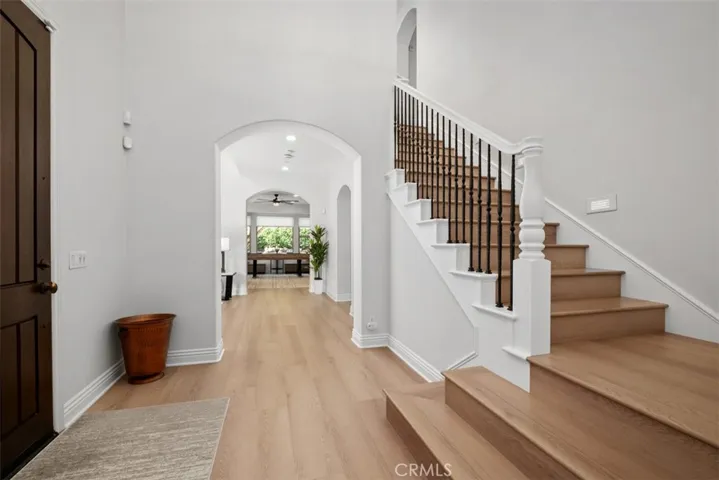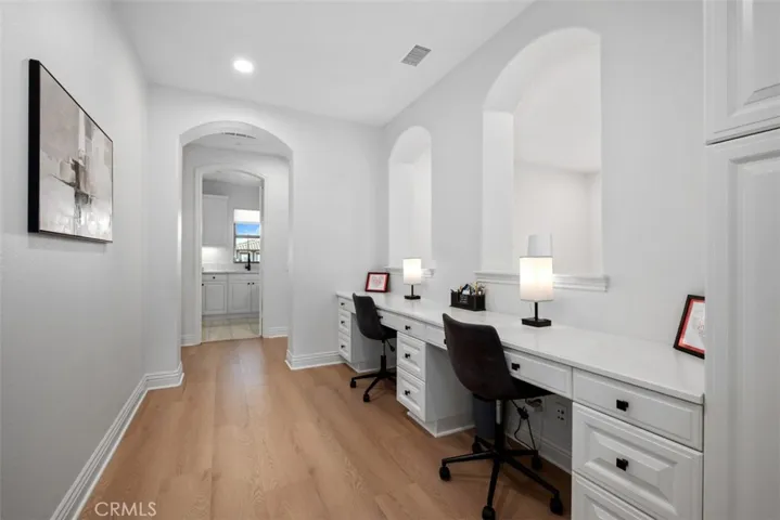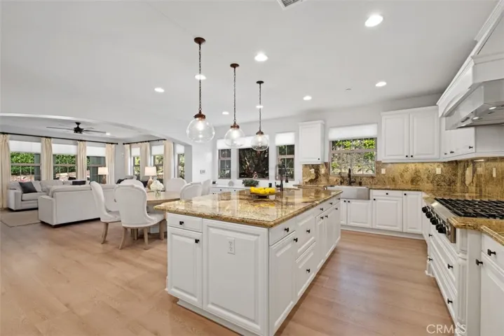 Welcome to 25 Via Nerisa in sought-after Talega of San Clemente on an oversized, private lot. This freshly remodeled residence offers 4 spacious ensuite bedrooms plus an office, loft, and custom built-in study area, providing flexible living spaces for work, relaxation, and entertaining. From the moment you enter, you’ll appreciate the new vinyl wood plank flooring throughout, fresh interior paint, custom blinds, updated ceiling fans, and new cabinet hardware that create a clean, contemporary feel. The private downstairs office is thoughtfully designed with custom built-in shelving, cabinetry, and desk space, separated by a stylish barn door. A large downstairs bonus room offers versatility as a game room, media space, or formal dining room. The gourmet kitchen opens seamlessly to the great room and dining area. Designed for both everyday living and entertaining, it features: Granite countertops, Stainless steel appliances, 8-burner gas range, Double ovens, Oversized built-in refrigerator, Stainless steel sink, Custom lighting, Expansive walk-in pantry. Upstairs, a quiet loft and dual built-in study desks with drawers and cabinetry provide the perfect homework or creative space. The primary suite spans the entire back of the home, offering exceptional privacy along with a private balcony, dual walk-in closets, and a cozy fireplace. The spa-inspired primary bath includes custom mirrors, updated fixtures, a large walk-in shower, and a soaking tub. Each secondary bedroom features a beautifully remodeled ensuite bath with quartz countertops, marble flooring, new fixtures, mirrors, sinks, and hardware. Even the laundry room has been elevated with new quartz counters, sink, fixtures, and marble floors. Step outside and experience true indoor-outdoor California living. The expansive wrap-around yard includes: Gated courtyard entry with bubbling fountain, Outdoor fireplace, Firepit with seating area, Turf play spaces, New Built-in Blaze BBQ grill, Private putting green. Additional upgrades include Google Smart Home and Security systems, Moen Flo water shutoff for leak detection and conservation, earthquake gas shutoff valve, owned solar panels with new solar battery, and new Saferacks garage storage system in the oversize 3 car garage with extra storage, built-in cabinets, and a work bench. All of this is located within the master-planned community of Talega, where residents enjoy beautiful parks, a Swim Club, scenic trails, and award-winning schools.