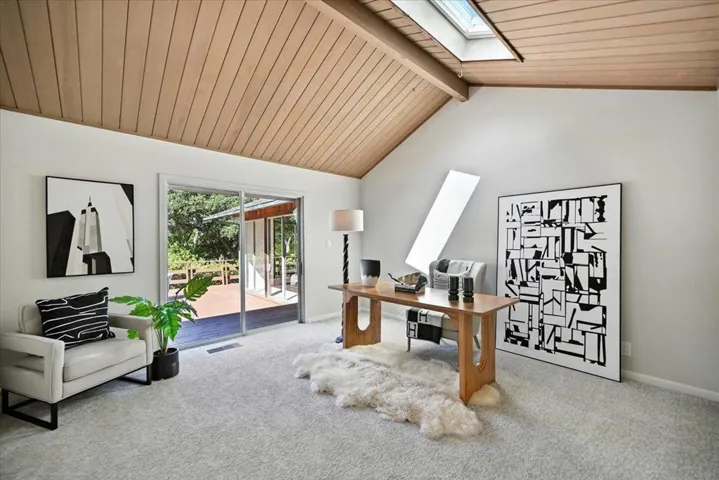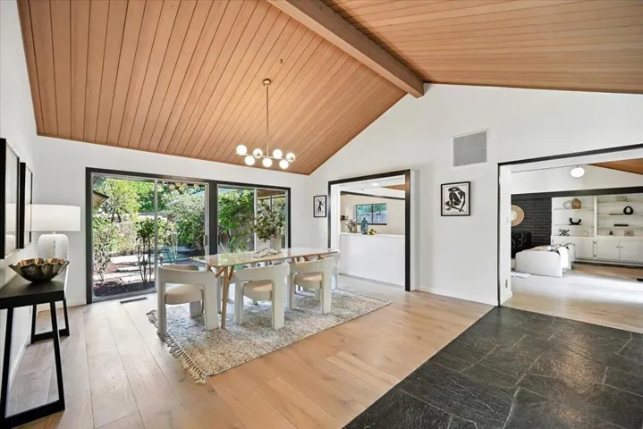 A rare opportunity to own a timeless Saratoga Mid-Century Modern estate in one of the most prestigious neighborhoods. Privately tucked behind a gated entrance on a flat 1.24-acre lot, this 5-bedroom, 3.5-bath, 5,323 sq. ft. single-level residence offers architectural pedigree, thoughtful updates and serene privacy. Originally designed by award-winning architect Warren Heid with remarkable attention to detail & symmetry, the home was envisioned as a Japanese garden inspired retreat, blending Wabi-Sabi simplicity with modern minimalism. Open floor plan showcases soaring vaulted ceilings & dramatic walls of glass, creating a seamless connection to the sun-filled landscape w/ majestic oaks & redwoods. Numerous skylights bathe the interiors in abundant natural light. Separate spacious living and family rooms, a formal dining room, and a gourmet kitchen with sleek counters & top-of-the-line appliances. The luxurious master suite features glass doors that open to the lush backyard. Recent updates include a brand-new roof, new hardwood floors, a crafted deck, .etc. Walking distance to Saratoga Elementary and charming Downtown Saratoga. Just minutes to Villa Montalvo and the Mountain Winery. Highly acclaimed Saratoga School District! This property is truly an extraordinary offering!