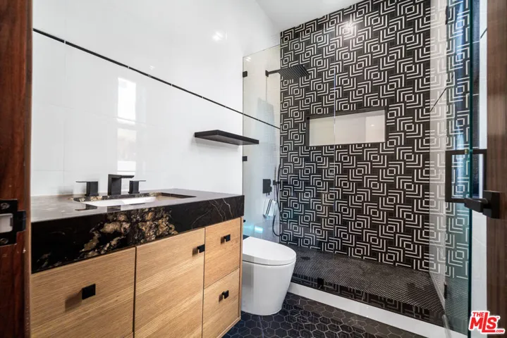 Set in the heart of Palm Desert, this striking newly constructed contemporary residence offers the perfect balance of refined design, modern comfort, and resort-style living. Privately gated and thoughtfully designed, this 4-bedroom, 3-bathroom home invites you to enjoy sweeping views, a sense of privacy, and the kind of seamless indoor-outdoor lifestyle the desert is known for.From the moment you enter through the dramatic 10-foot double doors, you’re welcomed into a bright, open interior designed for both everyday living and elevated entertaining. Engineered hardwood flooring, custom interior doors, a sleek smart electric fireplace, and curated black and gold fixtures and hardware create a clean, sophisticated aesthetic throughout.At the center of the home, the open-concept kitchen is made to gather in whether you’re hosting friends for cocktails or enjoying a quiet morning at home. It features custom cabinetry, quartz countertops, a dramatic waterfall island, pot filler, premium KitchenAid stainless steel appliances, and a stylish bar area with wine refrigerator.The layout includes three secondary bedrooms plus a spacious primary suite with a walk-in closet and a spa-inspired ensuite bath featuring dual sinks, a soaking tub, and a walk-in shower overlooking the lush yard. Additional bathrooms showcase striking stone and porcelain finishes and smart toilets, blending design with modern convenience.Outside, the home truly shines as a private desert retreat. Enjoy a heated pool and jacuzzi, with space to relax, unwind, and entertain with ease. Whether it’s a weekend gathering, sunset dinner, or poolside afternoon, this home is designed to make hosting feel effortless.Additional highlights include smooth Santa Barbara-style stucco, new copper plumbing, new gas line, new electrical, new sewer, central air and heating, and a 2-car garage with deep epoxy flooring and an aluminum glass garage door.Ideally located in central Palm Desert, this home offers convenient access to the area’s top dining, shopping, golf, entertainment, and everyday amenities placing you close to everything while still enjoying a private, polished retreat.